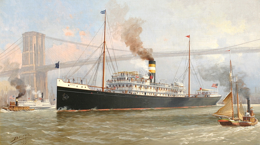 1899년 가을, 미국에서 첫 번째 시연이 이루어졌다. 마르코니는 뉴욕 헤럴드 신문의 초청으로 뉴저지주 샌디 후크에서 열린 아메리카스컵 국제 요트 경주를 취재했고, 전송은 푸에르토리코 라인의 여객선 SS ''폰스''호에서 이루어졌다.[47]