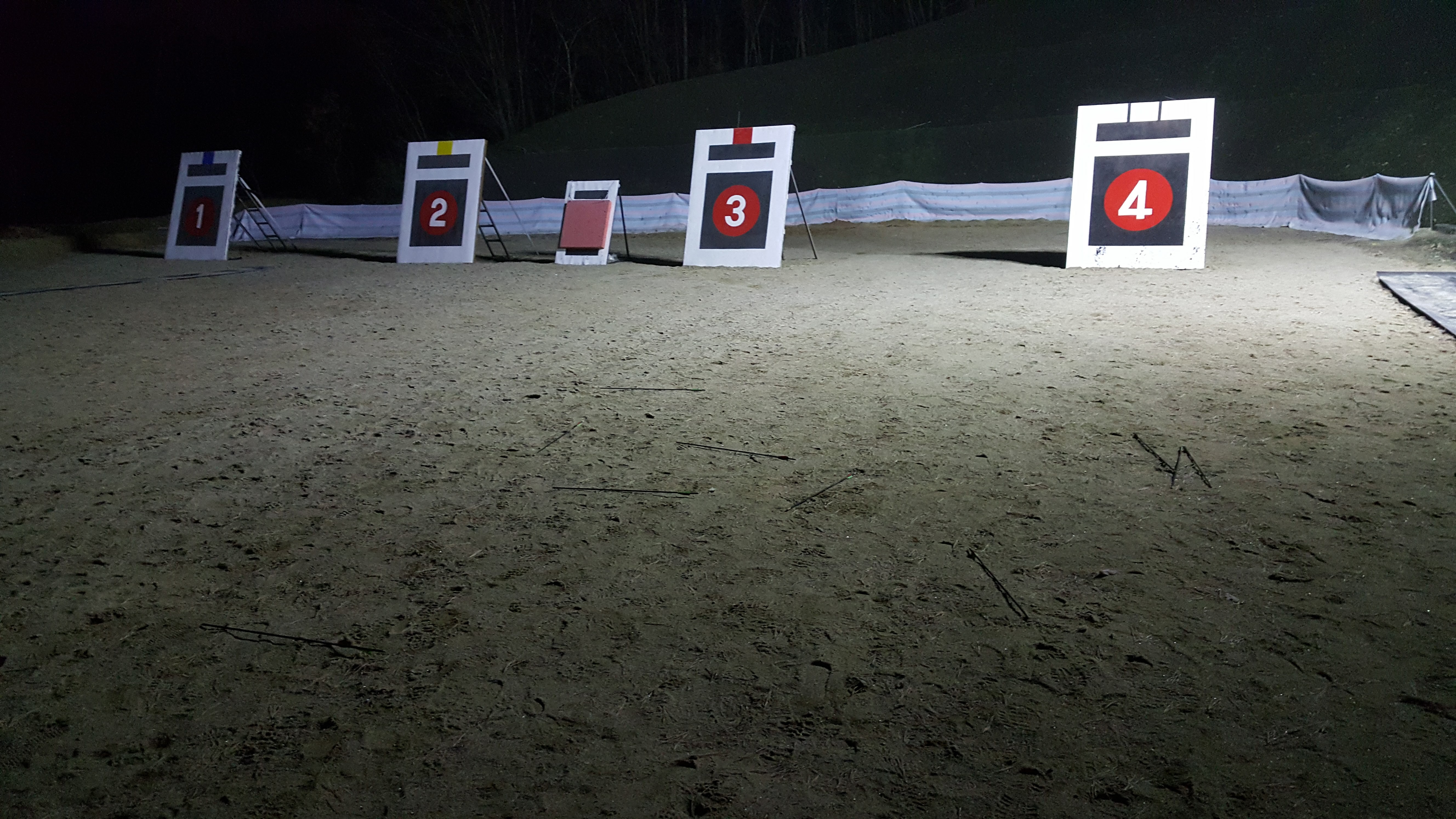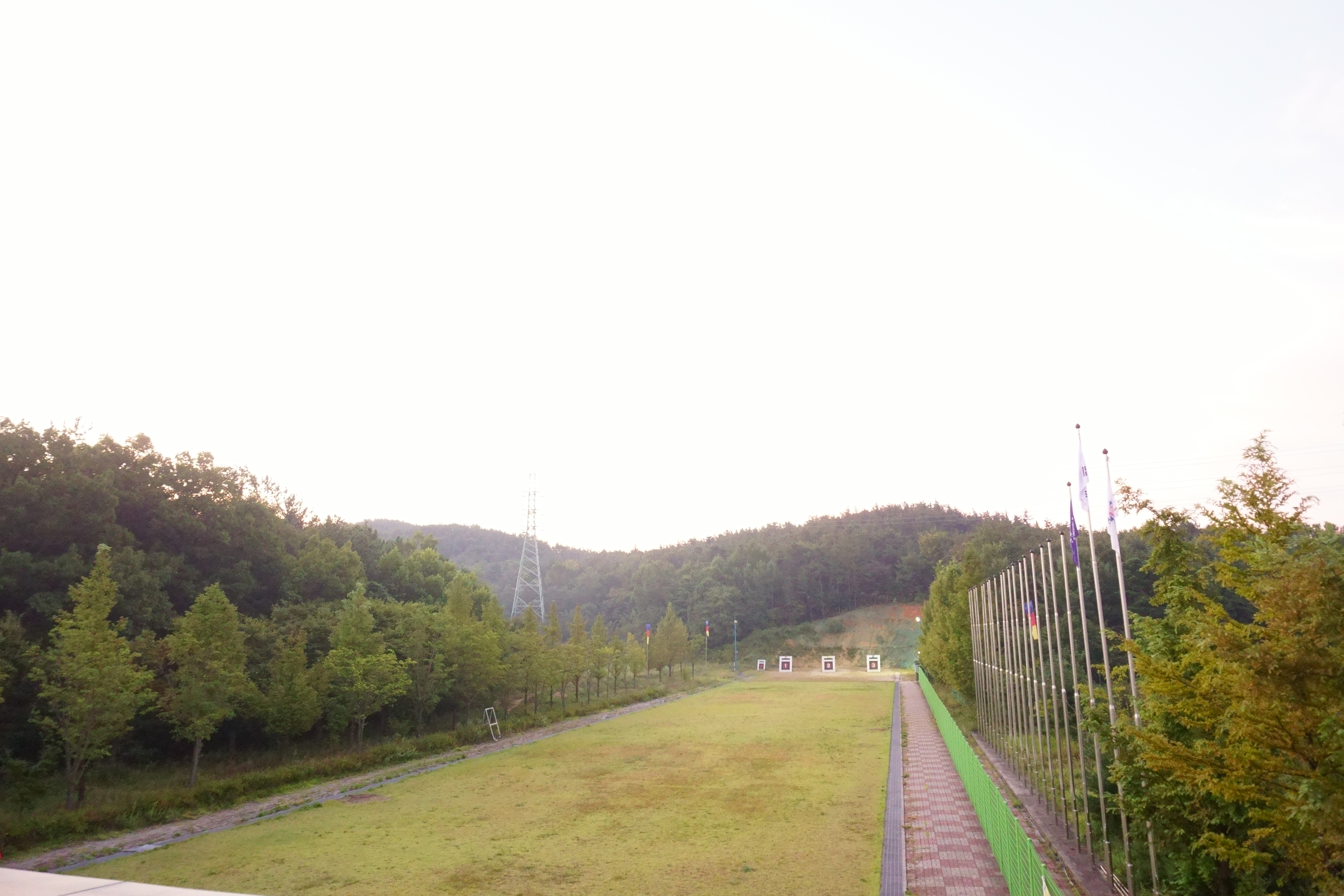 - '''과녁:''' 대한궁도협회 공인 과녁은 가로 2m, 세로 2.66m의 사각형이며, 후방 15도 경사각으로 설치된다. 과녁 간 간격은 5m 이상이며, 후면에 안전지대가 있어야 한다.[14]