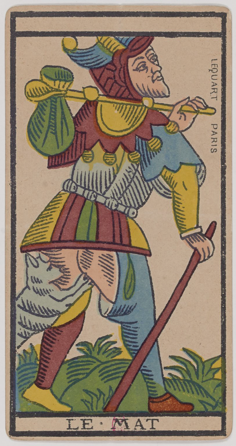 타로에서 "바보"는 메이저 아르카나의 첫 번째 카드이다. 타로에서의 바보는 종종 밝은 옷을 입고 한 손에는 흰 장미를, 다른 손에는 작은 소지품 묶음을 들고 있으며, 발 뒤에는 개나 고양이가 있는 남성(또는 드물게 여성)으로 묘사된다. 바보는 절벽, 낭떠러지 또는 다른 높은 곳의 가장자리에서 무심코 걸어 내려가는 행동을 하고 있다.