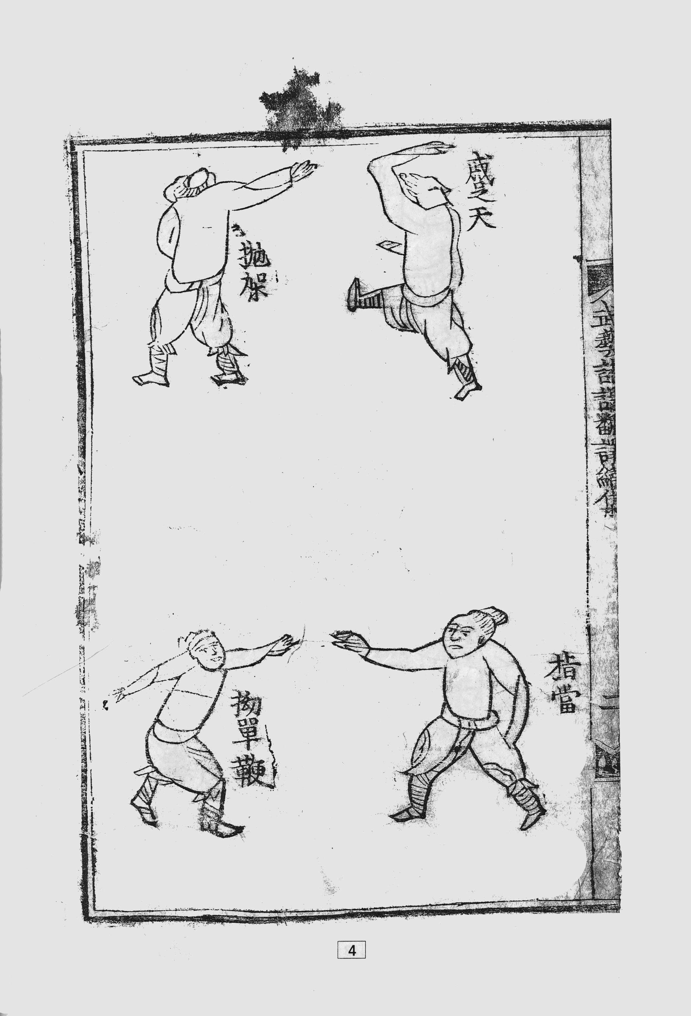 기효신서 제14장 《권경제요편》(拳經捷要篇) 서문에서 명나라 장수 척계광은 권법 훈련 내용을 정리하기 위한 용어를 만들었다.[5] 그는 권법을 타격(踢|중국어), 발차기(打|중국어), 레슬링(摔|중국어), 제압(拿|중국어)의 네 가지 범주로 나누었으며, 처음으로 권법의 유형을 단타(短打, Short Fist|영어)와 장타(長打, Long Fist|영어)로 구분했다.[5] 척계광 이전에도 권법은 수 세기 동안 알려져 있었지만, 대부분 특정 부대나 지역에 국한된 훈련이었다. 그는 군인이 사용하는 다른 무기 및 임무와 연관되는 군사 과학으로서 권법을 체계화하려는 의도로 이 네 가지 범주에 따라 자료를 정리했다.