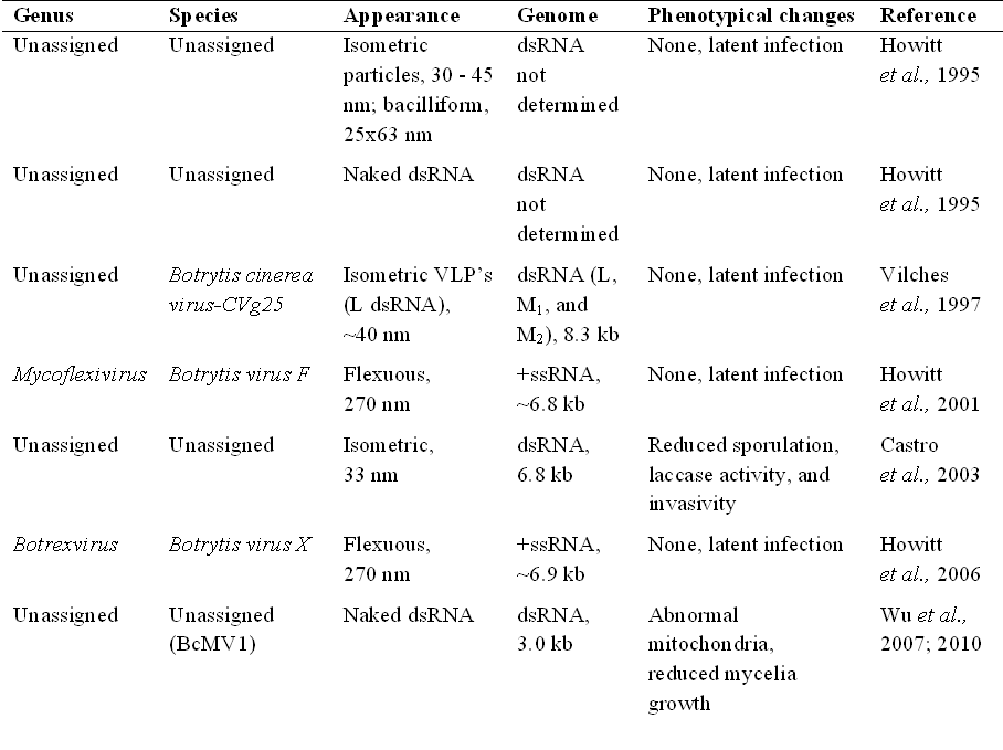 ''Botrytis cinerea''는 식물을 감염시키는 것 외에도 여러 균류 바이러스의 숙주 역할을 한다.