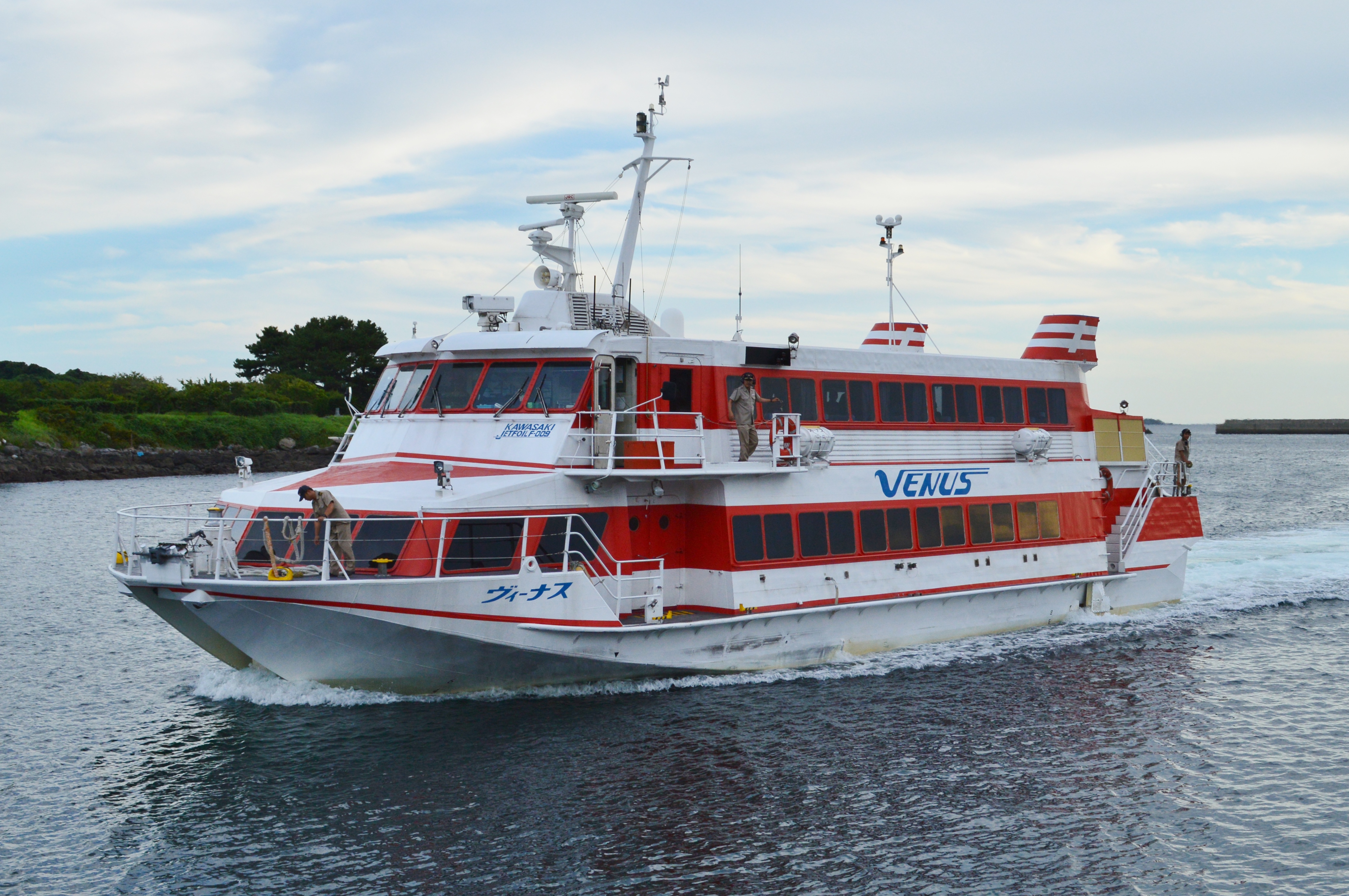 • '''비너스2'''는 1985년에 준공되었으며, 2000년 4월 1일에 취항하였다.[26] 총 163톤, 전장 27.4m, 폭 8.5m, 출력 7,600마력, 항해 속력 약 40노트이다. 여객 정원은 257명이며, 보잉에서 건조되었다. 원래 간사이 기선 "제트 8", 사도 기선 "팔콘"을 거쳐 구입한 선박이다.
