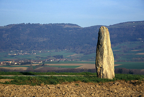 1895년 5월, 레 에샤텔라르에서 한 농부가 무게 약 3톤, 높이 3.4m의 지석을 발견하여 현재 위치에 세웠다.