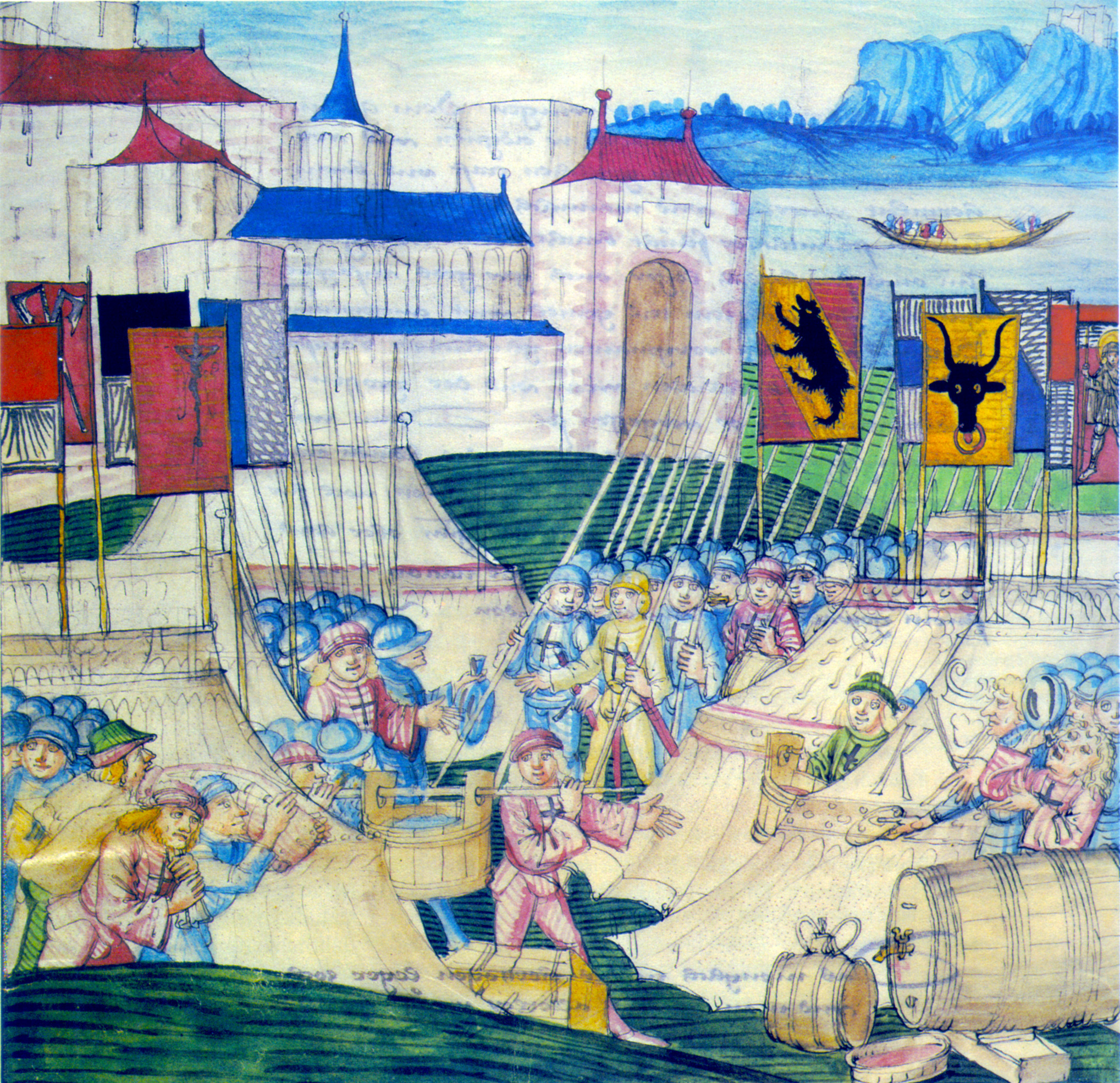 15세기 후반, 그랑송 성은 자크 드 사부아의 소유였으며, 그는 용담공 샤를의 동맹이었다. 1475년 이 성은 스위스 연방에 의해 점령되었다. 1476년 2월 말, 용담공 샤를은 성을 되찾기 위해 대규모의 용병 군대를 이끌고 왔다. 구원군이 올지 불확실했던 수비대는 항복하기로 결정했다.스위스 측 자료는 샤를이 그들에게 무사함을 보장한 후에야 항복했다고 만장일치로 진술하고 있다. 그러나 그는 수비대원 412명 전원을 처형하라고 명령했다.