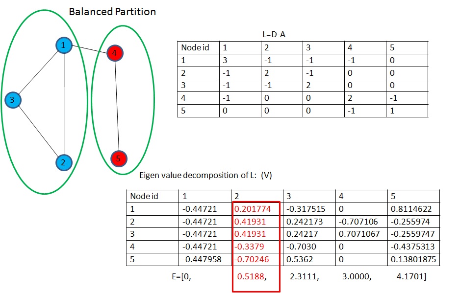 그래프의 라플라시안 행렬의 고유 벡터를 이용하는 방식