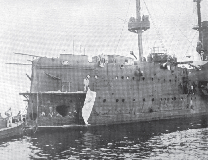 같은 해 9월 30일, 포시예트 만에서 조함 실수로 암초에 충돌하여[83] 1905년 2월 말까지 수리했다. 1905년 5월 11일에는 루스키 섬 앞바다에서 기뢰에 부딪혀[84] 같은 해 9월까지 수리했다.
