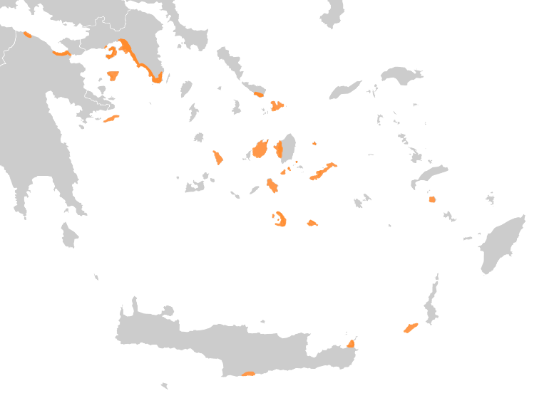 헬레닉 국립 기상청과 아테네 국립 천문대 네트워크에서 발행한 기후 지도에 따르면, 쾨펜 기후 구분의 ''BSh''형(아열대 스텝 기후)은 주로 다음과 같은 지역에서 국지적으로 발견된다.[5][6]