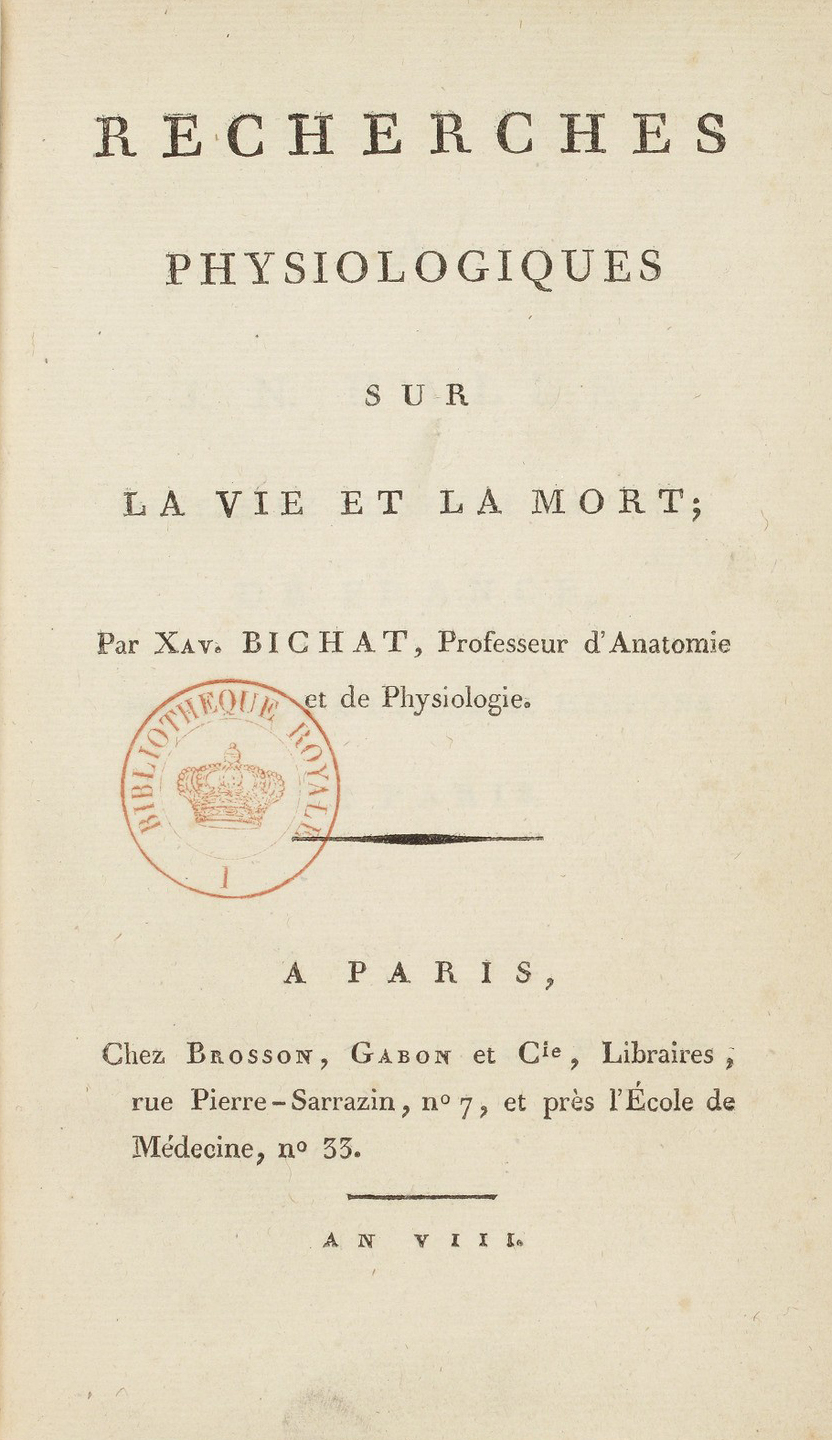 - 《생과 사의 생리학 연구》(Recherches physiologiques sur la vie et la mort), 1800년[36]