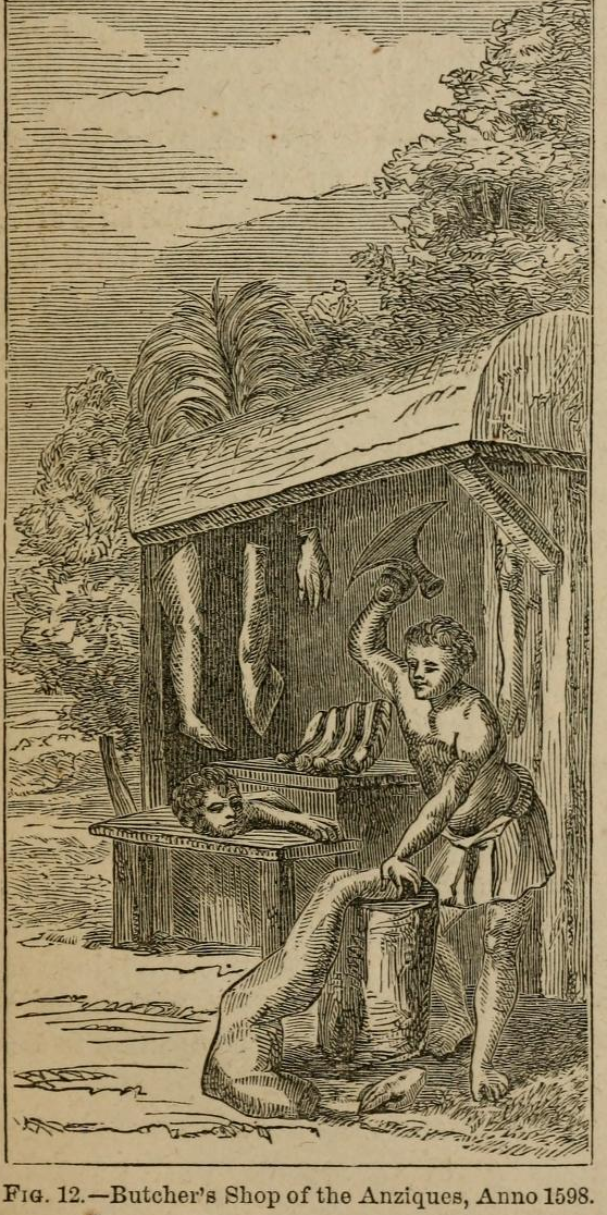 노인은 잠결에 노크 소리를 듣지 못했다며 화자를 환영한다. 그리고 삽화가 마음에 들어 구입했던 《콩고 왕국》에 대한 이야기를 나눈다. 라틴어를 읽지 못하는 노인에게 화자가 영어로 책을 번역하여 읽어주다가 삽화로 화제가 넘어간다. 황홀경에 취해 삽화에 대해 속삭이던 노인은 양을 도살하는 이야기를 하다가 말을 멈춘다. 천장에서 핏방울이 떨어져 책에 묻었기 때문이다.[4]