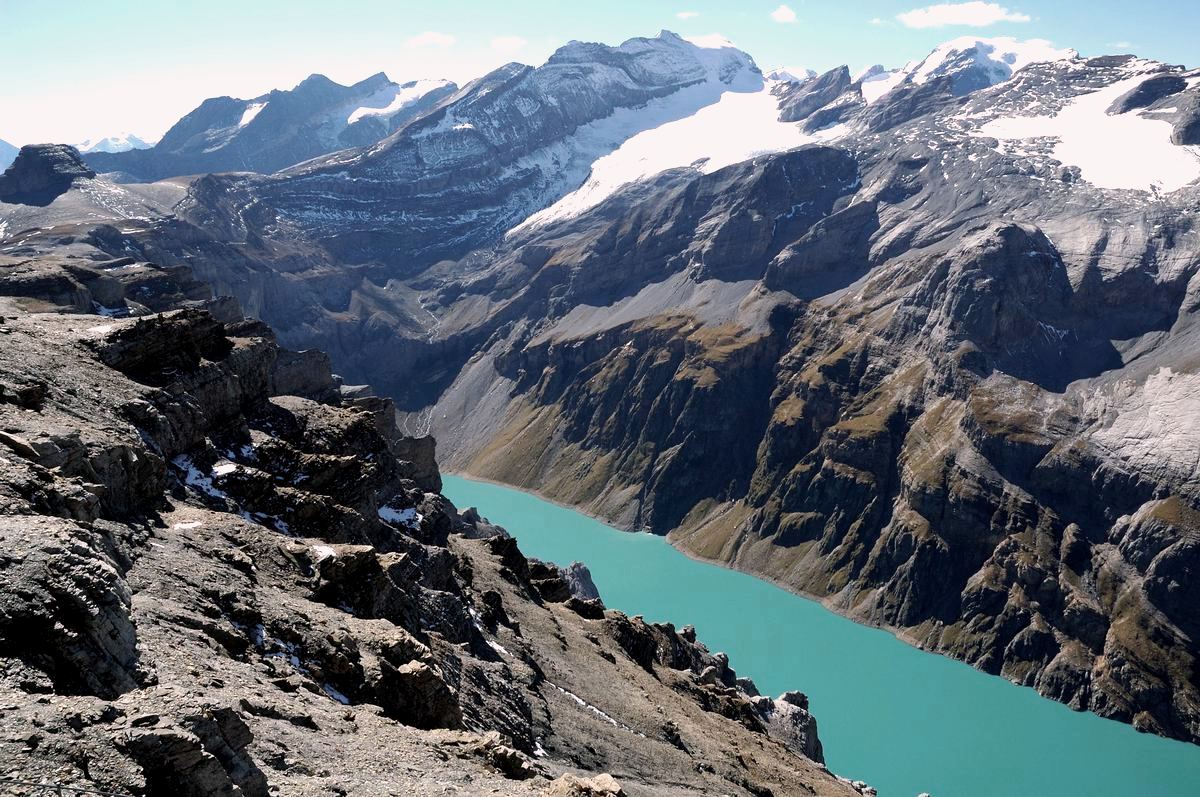 오버알프슈토크와 퇴디를 연결하는 눈 덮인 산맥의 능선은 2743m 아래로 내려가지 않으며, 북쪽으로 볼록하게 휘어져 반원형의 만입부를 형성한다. 이곳의 수많은 급류는 모두 디젠티스 아래의 발 루세인(Val Russein)을 통해 라인강으로 흘러든다. 이 산맥 일부에는 두 개의 빙하 고개가 있는데, 하나는 서쪽으로 브루니글렛처(Brunnigletscher)를 지나 마데라르탈로 이어지고, 다른 하나는 북동쪽으로 잔트 빙하(Sand Glacier)를 지나 린탈로 이어진다.[1]