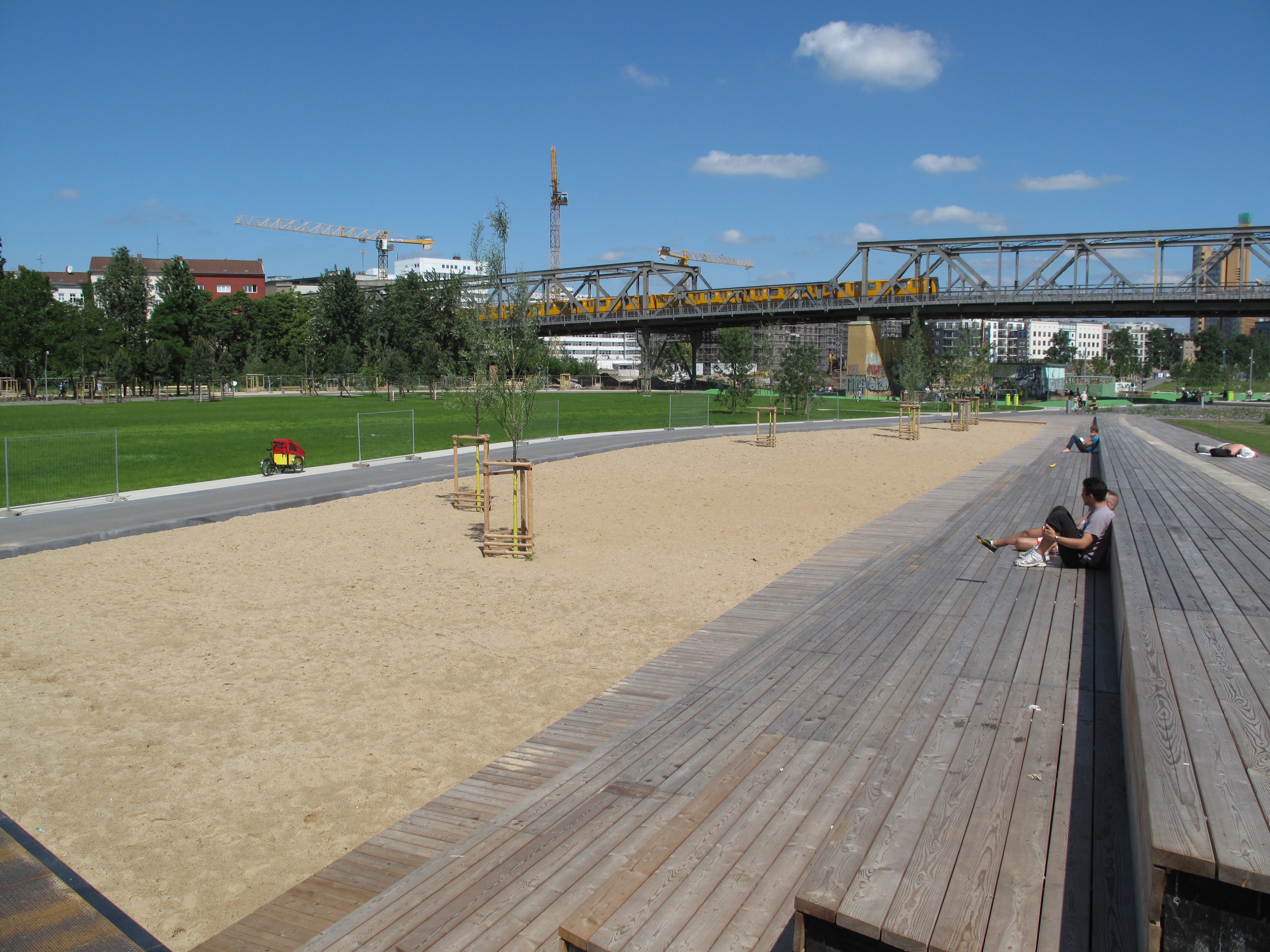 과거 포츠담역과 안할트역의 화물역 부지에 60ha 규모의 글라이스드라이에크 택지가 개발되었고, 2011년부터 2014년까지 공원이 조성되었다. 1988년에는 p.t.t.red의 《Goldener Schnitt durch Berlin》 작품의 일환으로 U1/U3, U2 노선 철교에 일부 금박이 입혀졌다. 1992년/1993년 고가 철도 개보수 공사 중 공원에서 볼 수 있는 금박이 입혀진 부분이 개보수되었으며 여전히 예술 작품의 일부이다.[17]