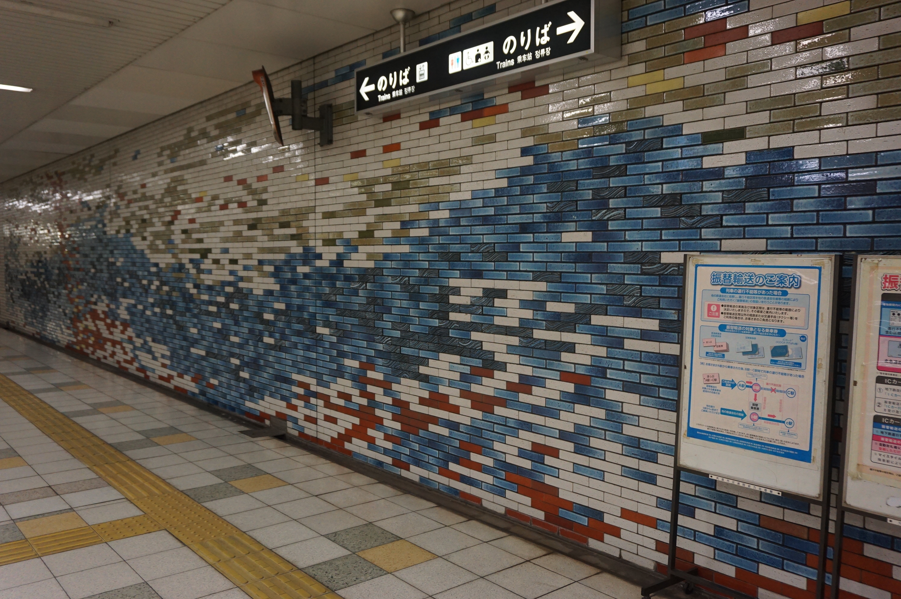 섬식 승강장 1면 2선을 갖춘 지하역으로, 개찰구는 1곳만 있다. 개찰구 앞에는 야마토강을 형상화한 타일 벽화가 설치되어 있다.
