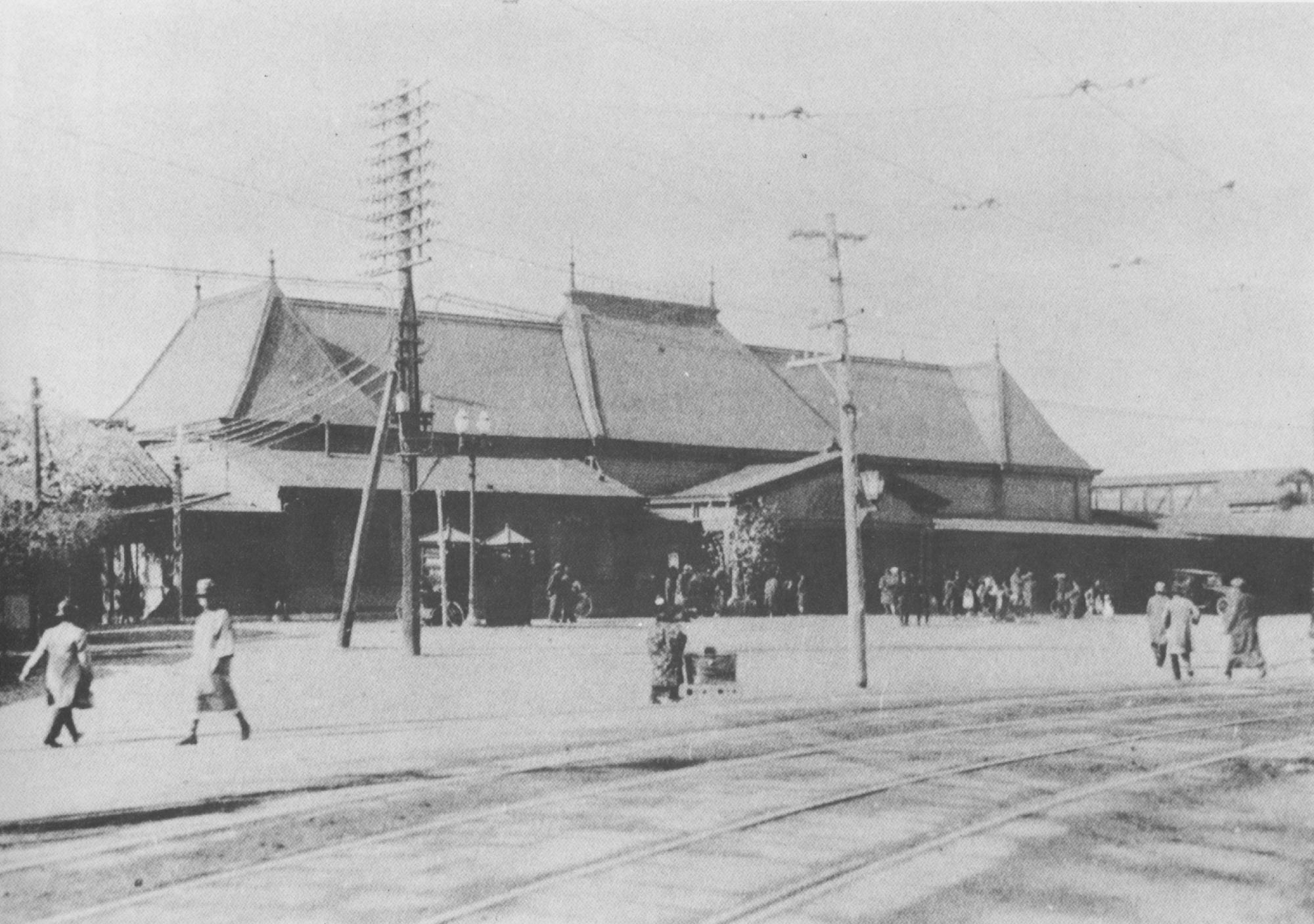 1913년 7월 22일, 현재 위치로 이전하였다.[10] 1909년에 폐지된 구 아이치역의 역사를 옮겨와[10] 1945년 공습으로 소실될 때까지 사용하였다.