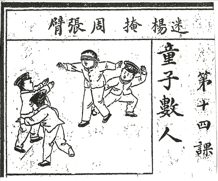 - 일본에는 독특한 변형 규칙이 있는데, 소녀들이 기모노를 입고, 눈을 가린 소녀가 찻잔을 든 채 다른 소녀들을 잡는 방식이다. 이는 1899년 도쿄의 마츠키 헤이키치가 출판한 미야가와 슌테이의 목판화 코도모노 아소비(Kodomo-no-Asobi, 어린이 놀이)에 묘사되어 있다.