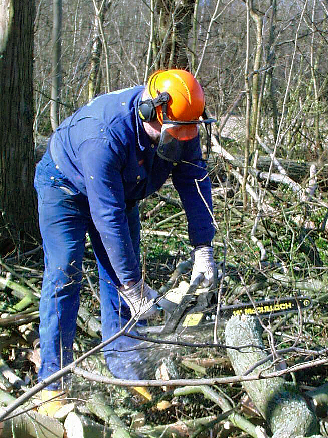 나무를 베어 넘어뜨리는 작업은 과거에는 도끼 또는 톱을 함께 사용했지만, 현대에는 체인톱을 사용하는 것이 일반적이다. 또한 필요에 따라 톱, 쐐기, 쐐기를 박는 망치, 로프, 윈치, 지렛대 등을 사용한다.