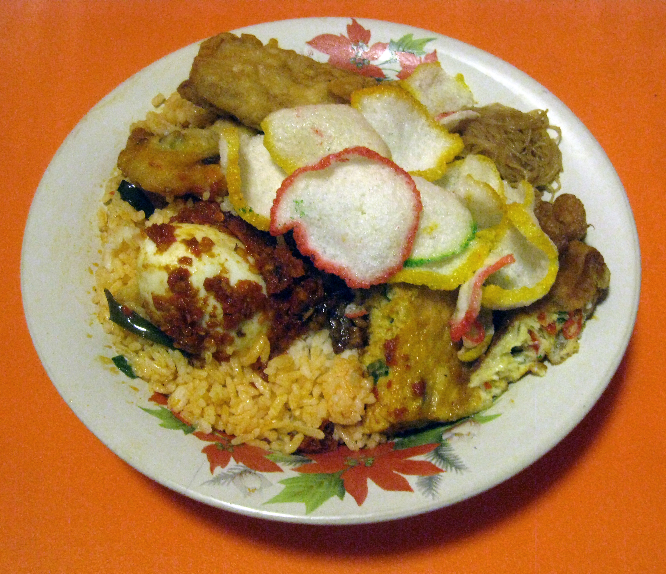 오늘날에는 얇게 썬 계란말이, 텔루르 붐부 발리(발리식 계란), 엠팔(달콤하게 튀긴 소고기) 또는 렌당과 같은 현대 인도네시아 요리(또는 다른 지역의 요리)도 포함될 수 있다. 비훈 고렝(쌀국수)이나 미 고렝(면), 크루푹, 렘페이엑, 엠핑도 추가될 수 있다.