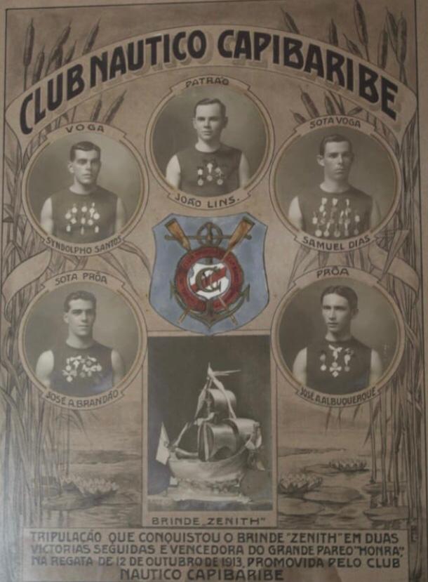 : ”1901년 4월 7일, 페르남부쿠 회사 부두 1번지 1층에서 주앙 빅토르 다 크루즈 알파라 씨의 초대로 그와 안토니오 디아스 페레이라, 에스메랄도 구스마오 완데를레이, A. 옴문드센, 오스왈도 드 바루스 린스 이 실바, 프란시스코 조아킴 페레이라, 주앙 비에이라 드 마갈랴이스, 프란시스코 레안드로 로차가 참석했다. 안토니오 디아스 페레이라 씨가 회의 의장으로 추대되어 의장석에 앉아 회의 개회를 선언하고, 피라지베 하기세 씨를 제1서기, 프란시스코 조아킴 페레이라 씨를 제2서기, 주앙 비에이라 마갈랴이스 씨를 재무로 임명했다. 주앙 알파라 씨는 발언을 요청하여 해상 활동을 위한 클루비 나우치쿠 카피바리비라는 이름의 협회를 설립하는 것을 목적으로 하는 회의의 목적을 설명했다. 이 아이디어는 모두에게 승인되었다 [...] 협회의 깃발은 10개의 패널로 구성된다. 상단과 하단은 빨간색, 중간은 흰색으로, 파란색으로 C N C (클럽의 약자)가 새겨져 있다. 이는 또한 클럽 보트와 회원들의 특징적인 깃발 역할을 하며, 선박의 뱃머리에 파란색 닻과 클럽의 약자가 새겨진 흰색 원이 있는 작은 빨간색 잭으로 표시될 것이다 [...]”[4]