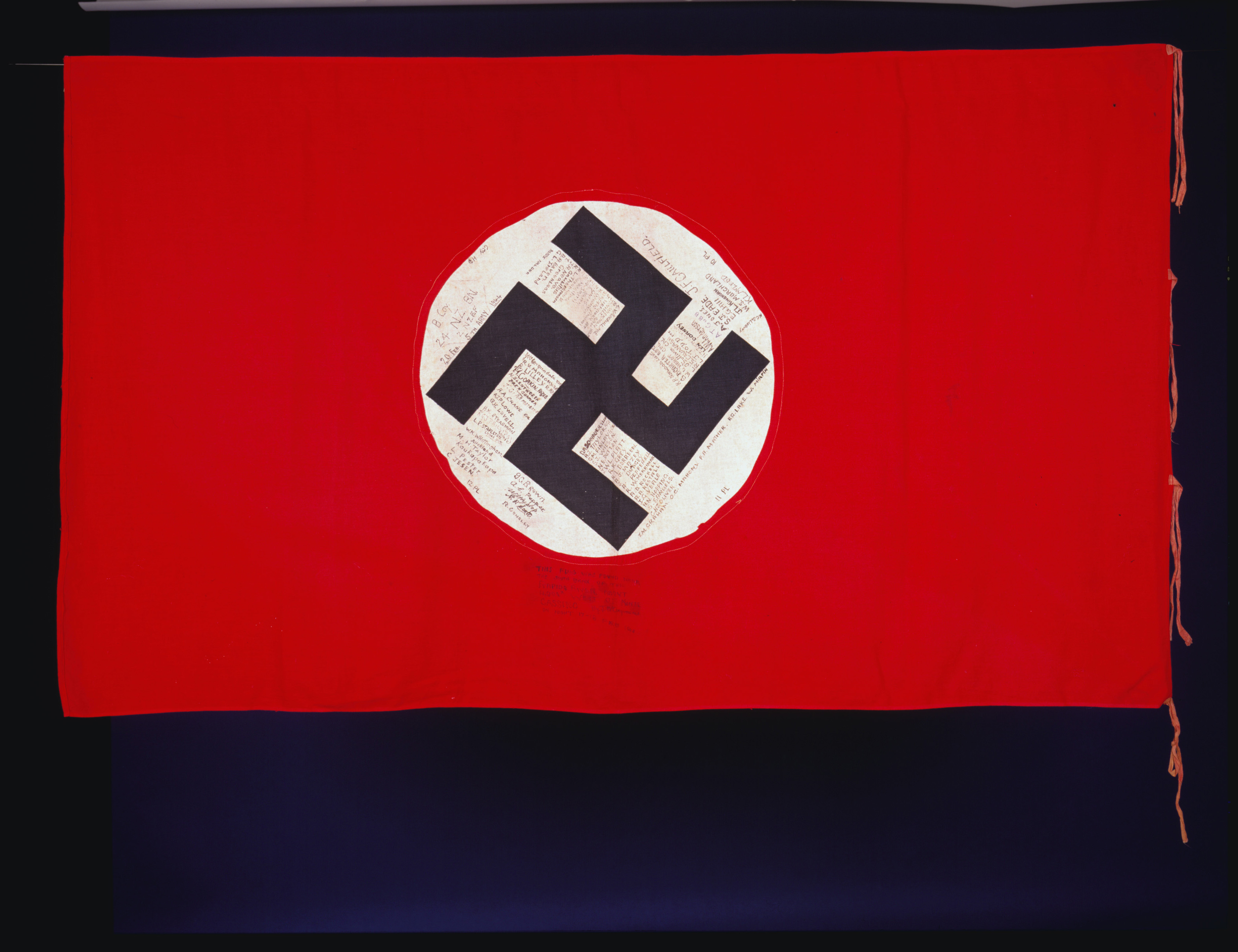 제2차 세계 대전 종전 후, 나치 독일이 패망하자 연합국 통제 위원회는 1945년 9월 20일에 첫 번째 법을 제정하여 제3제국의 모든 상징을 폐지하고 관련 법률을 모두 폐지했다.[13] 그 이후로 하켄크로이츠 깃발 소지는 여러 국가에서 금지되었으며, 특히 독일에서는 수입 또는 전시가 금지되었다.오늘날 나치 깃발은 독일 밖에서 네오 나치즘 지지자들과 동조자들에 의해 여전히 흔히 사용되는 반면, 독일 내에서는 네오 나치들이 나치 깃발 사용 금지 때문에 대신 독일 제국의 국기를 사용한다. 그러나 제국기에는 원래 인종차별적이거나 반유대주의적인 의미가 없었다.[14]