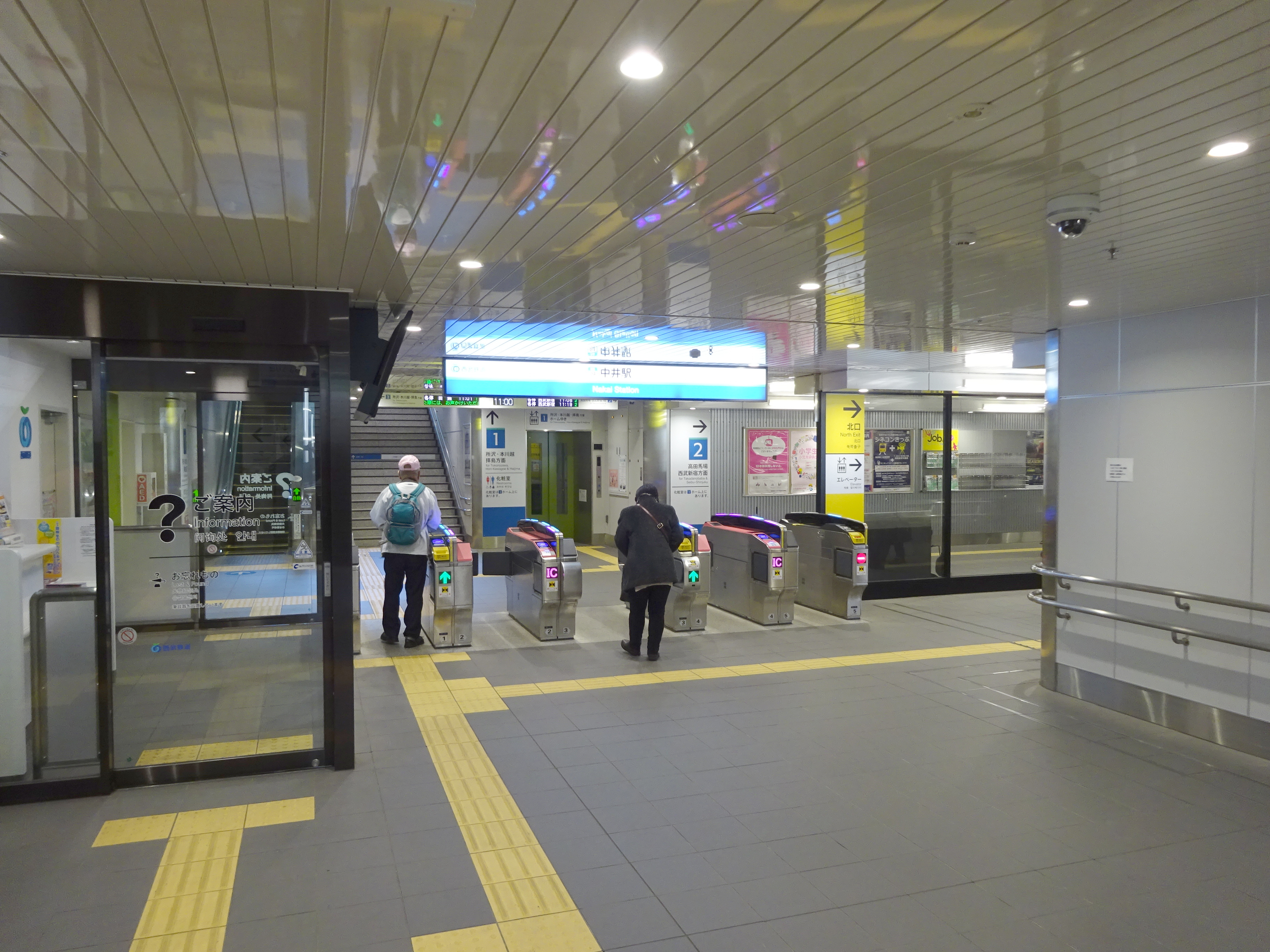개찰구는 지하에 있으며, 2000년경 야마노테도리 직결 계단이 철거되었다. 2016년6월 5일 지하 개찰구, 엘리베이터, 에스컬레이터 설치로 배리어 프리가 완료되었고,[15]12월 17일 남북 자유 통로 정비와 함께 북쪽 출구가 신설되었다.[13] 화장실은 하행 승강장에 있다.