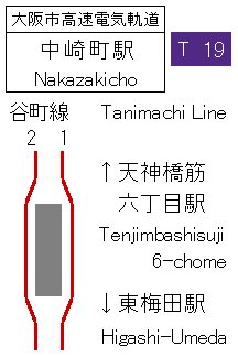 다니마치 선 | T18 덴진바시스지 로쿠초메 T19 나카자키초 역 T20 히가시우메다 |