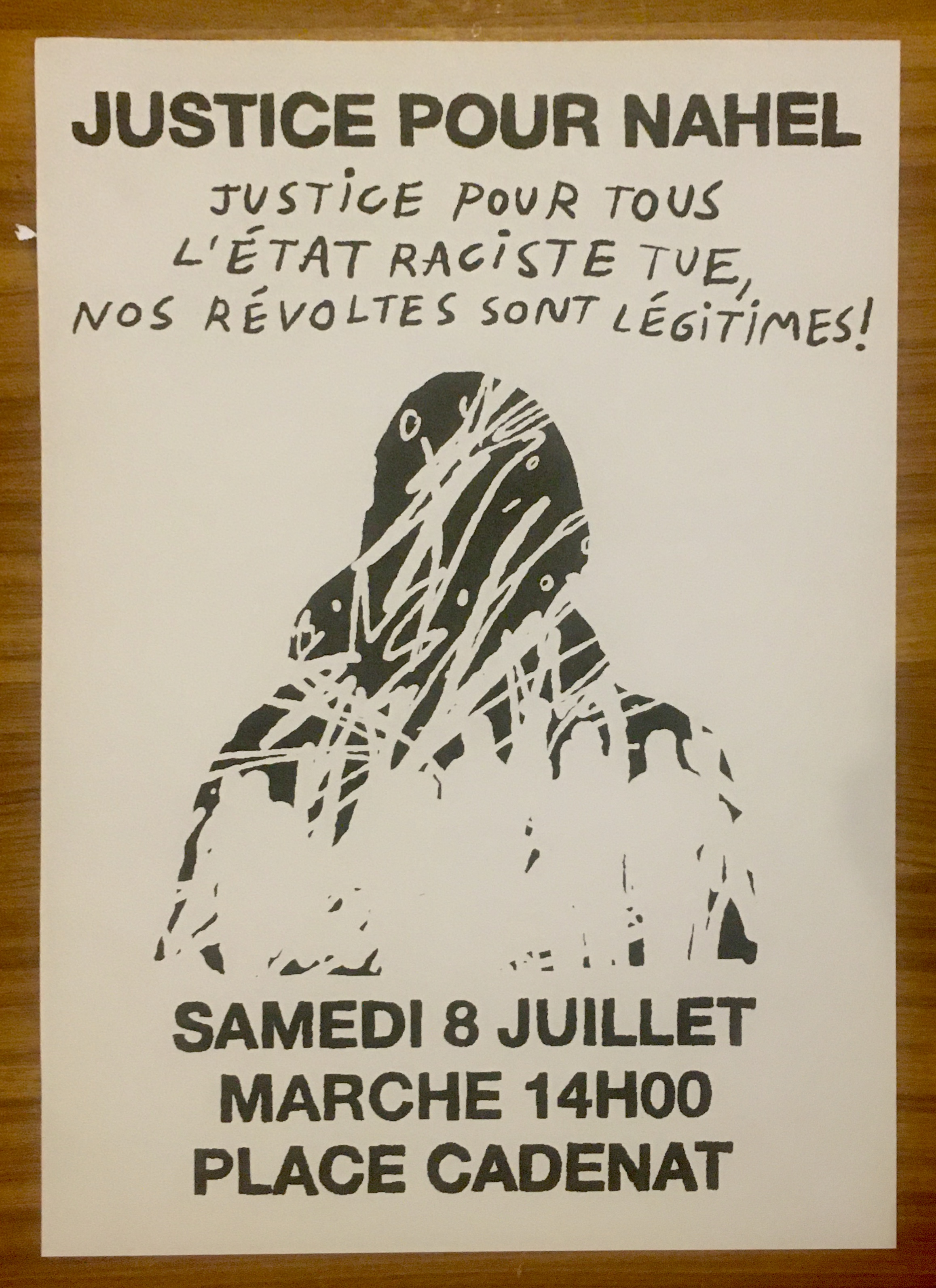 경찰 총격 사건 이후 마르세유 시위 포스터