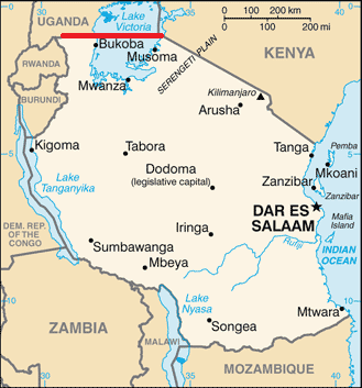 탄자니아는 남위 1도선을 경계로 우간다, 케냐와 국경을 이루고 있다.