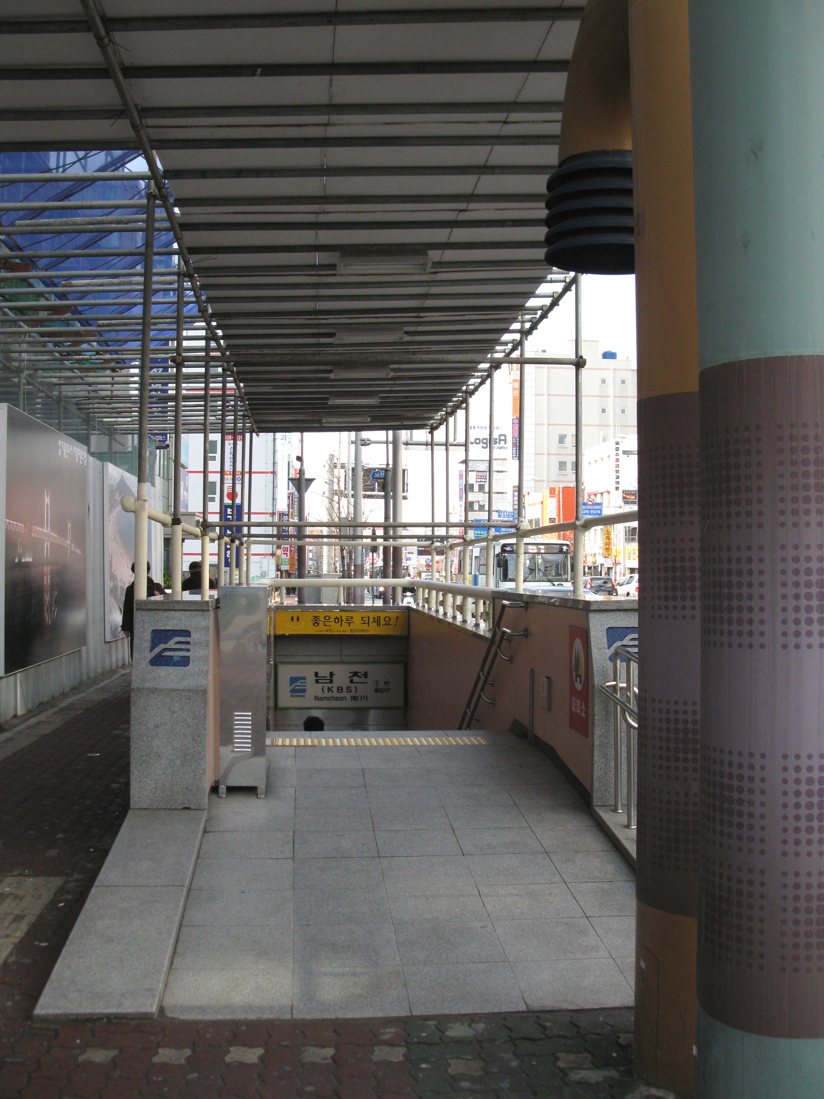 남천역은 부산 도시철도 2호선에 있는 지하철역이다. 2001년 8월 8일 2호선 개통과 함께 영업을 시작했으며, 2면 2선의 상대식 승강장에 스크린도어가 설치되어 있다. 역 주변에는 KBS부산방송총국, 천주교 부산교구청, 남천성당 등이 위치해 있다.