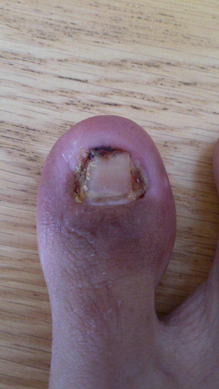 - 수술 (발톱 제거 등): 발톱을 제거해도 80%는 재발한다.[22] 고사카식 수술법은 재발률이 4%였다.[23] 하지만 심하게 발톱이 변형될 수 있다.[24]