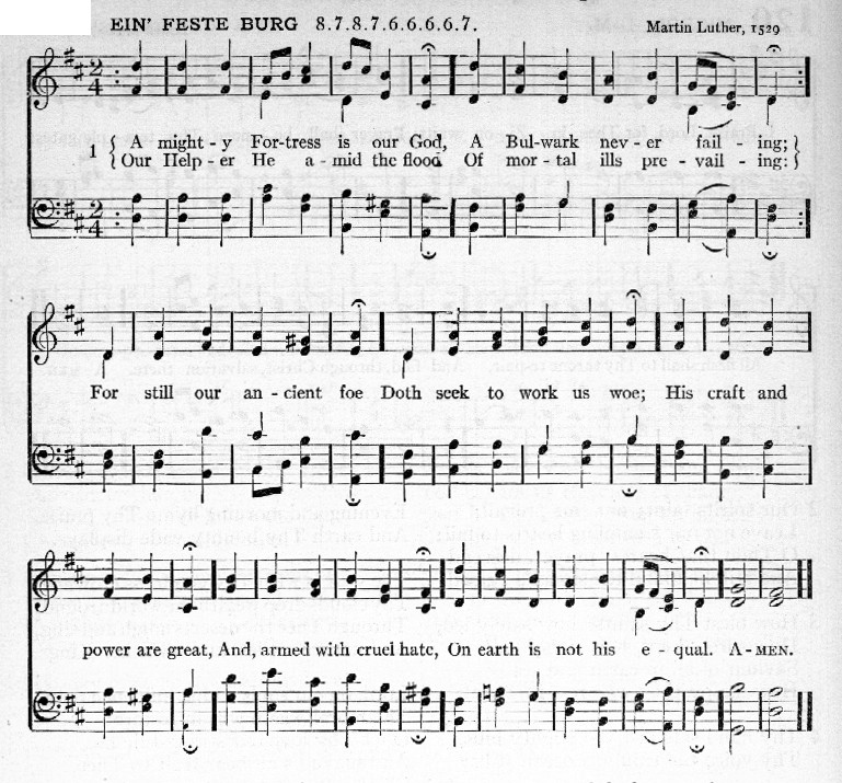 - 장 앙리 메를 다비네: 독일 루터교 공작들이 아우크스부르크에서 1530년에 열린 국회에 참석하기 위해 아우크스부르크에 들어갈 때 불렀다.
