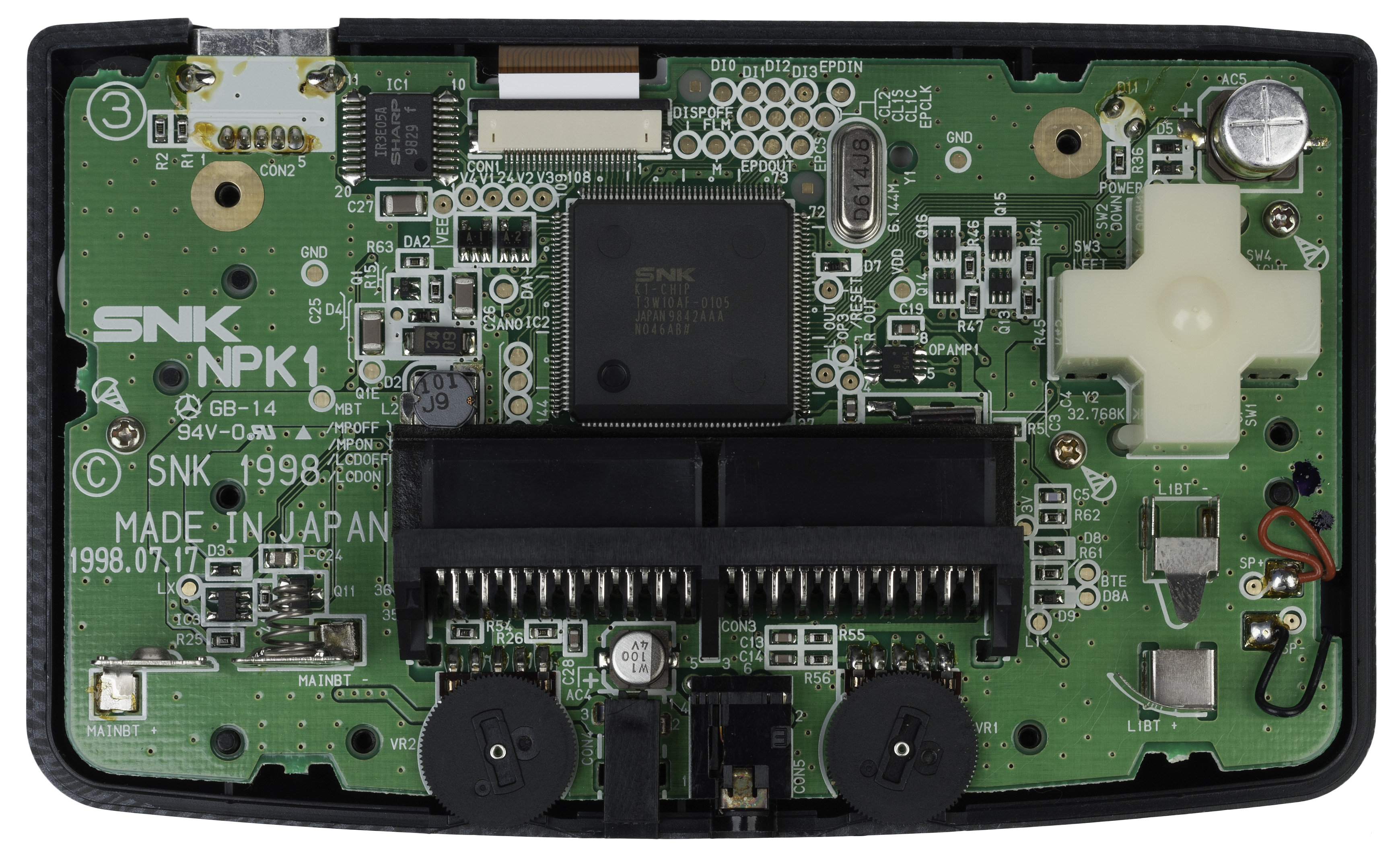 CPU는 16비트 도시바 TLCS-900/H 고성능 코어(최대 클럭 주파수 6.144MHz)와 사운드 칩 제어를 위한 Z80 8비트 CPU(클럭 주파수 3.072MHz)를 탑재했다.[6] 내장 RAM은 16KB이며, 16MB 연속 액세스가 가능하다. 메모리 백업 기능(리튬 배터리 내장)을 갖추고 있다.[6]