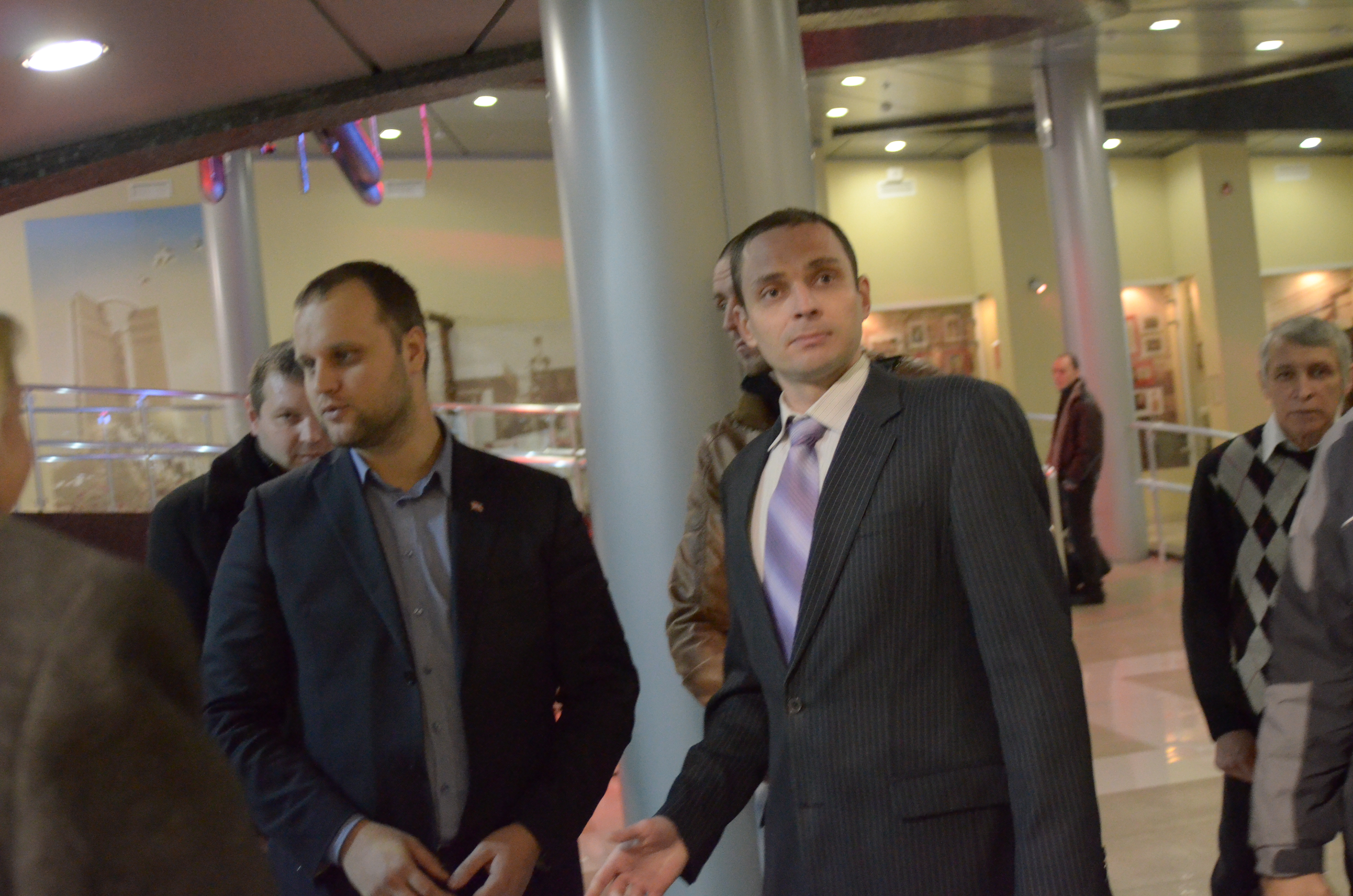 2014년 12월 24일 도네츠크 지역 박물관 90주년 기념 행사에서 파벨 구바레프(왼쪽)