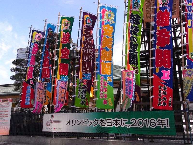 오늘날 노보리는 일본에서 흔히 볼 수 있는 풍경이다. 신사나 불교 사찰은 산책로, 울타리 또는 벽에 노보리를 늘어놓을 수 있으며, 이는 기부자 또는 사망한 신도의 이름을 자주 포함한다.[1] 료고쿠 국기관의 스모 경기장, 가부키 극장, 요세 등에서 선수, 배우, 출연자의 이름을 알리는 데 사용된다.[1]5. 4. 기타 용도