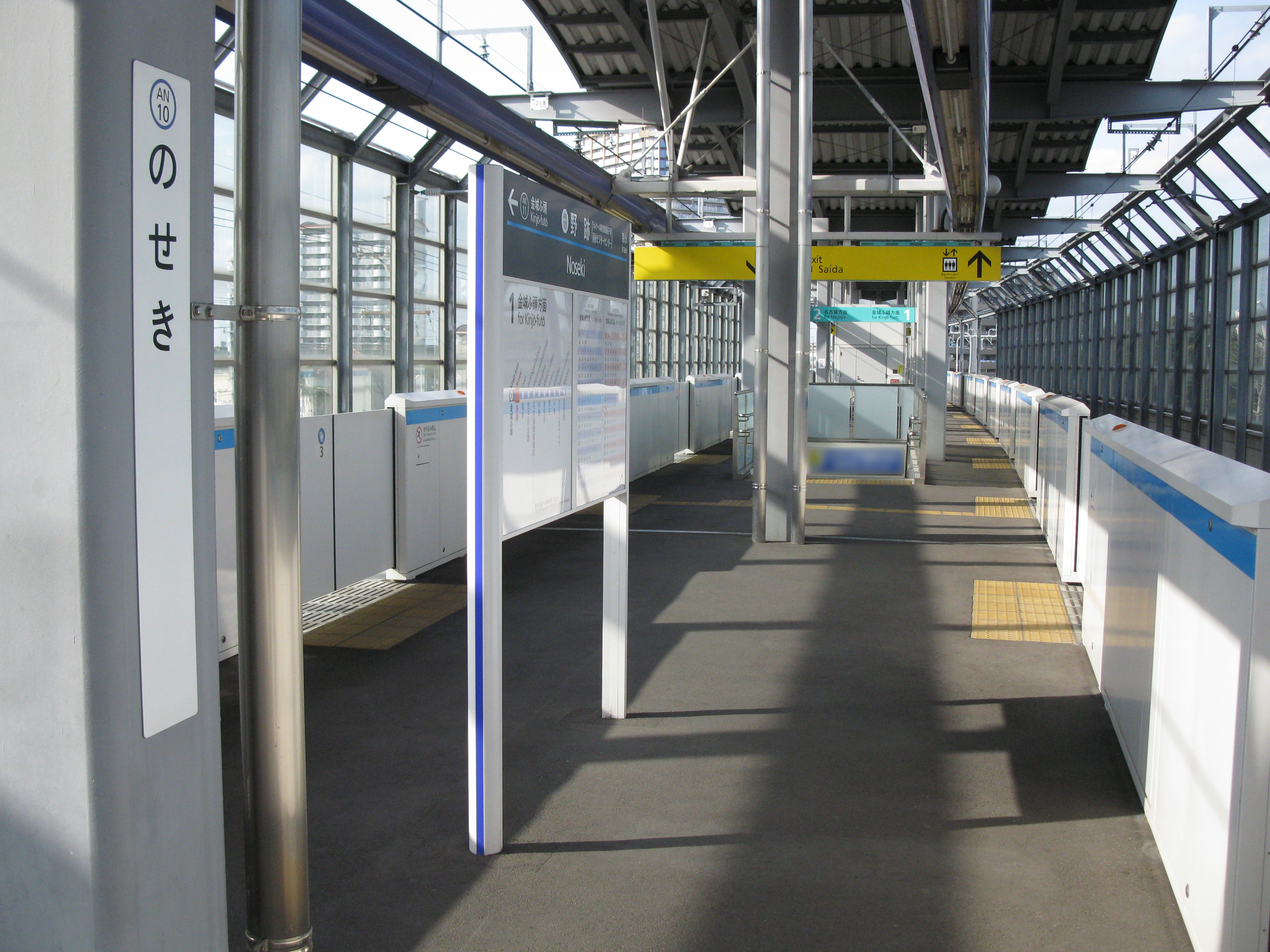 이나에이역 (AN09) - (시오나기 신호장) - '''노세키 역 (AN10)''' - 긴조후토 역 (AN11)