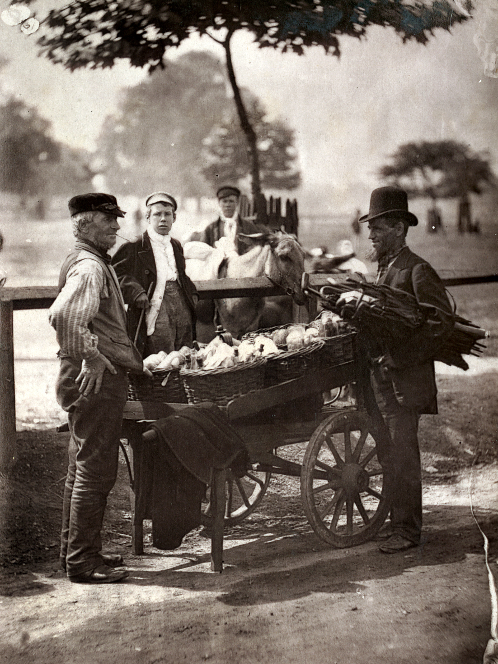 런던의 노점상들은 19세기에 전성기를 맞이했다. 이들은 조직적이지는 않았지만 암묵적인 규칙 속에서 도시 곳곳에서 활동했으며, 그들의 거리의 외침은 어디서나 들을 수 있었다.[23][24] 청량음료 회사인 R. White's Lemonade는 1845년 로버트 화이트와 메리 화이트 부부가 손수레에 음료를 싣고 런던 남부를 돌며 판매하면서 시작되었다.[25] 또한, 간식 빵인 잉글리시 머핀을 집집마다 방문하여 판매하는 '머핀맨' 역시 19세기 런던에서 흔히 볼 수 있는 행상인의 모습이었다.[26]