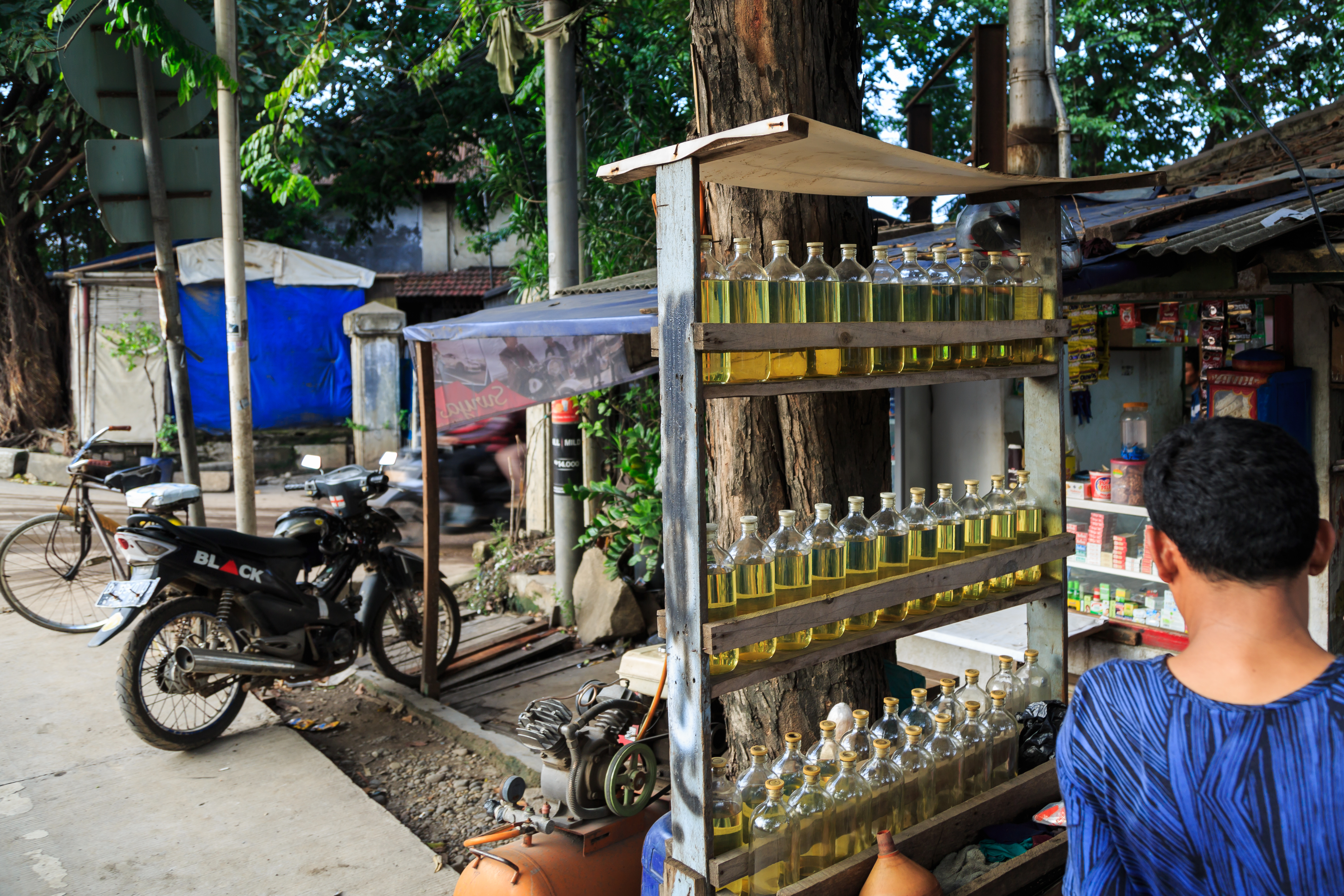 - 휘발유 판매: 주로 오토바이를 주요 교통수단으로 사용하고 오토바이 택시가 활성화된 동남아시아 국가들에서 볼 수 있다. 페트병 등에 휘발유를 소분하여 길가에서 판매하는 형태이다.