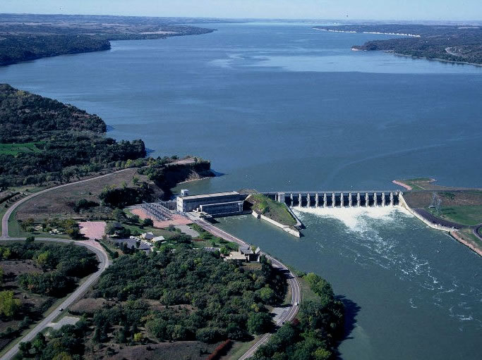 루이스 앤드 클라크 호수는 녹스군 북동부에 있는 미주리 강의 저수지이다. 앞쪽에는 개빈스 포인트 댐이 있다.