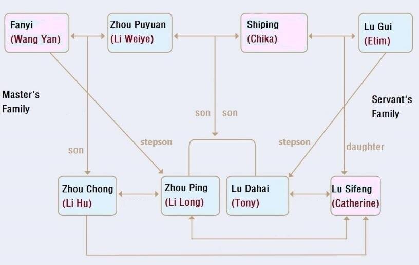 - 루 구이(魯貴): 48세로, 저우 가의 하인이다.[1]