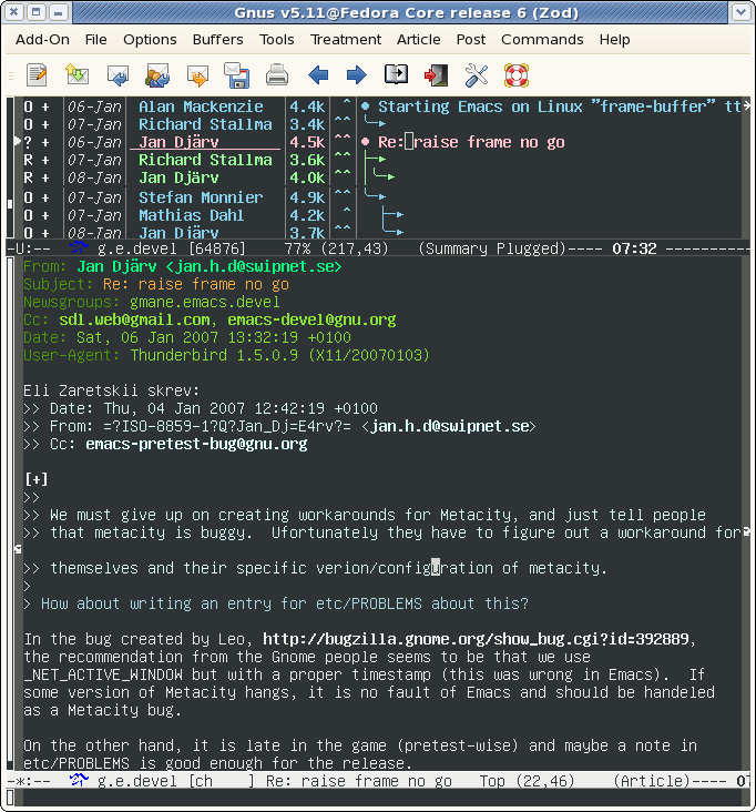 : 주로 텍스트 게시물을 읽고 게시하도록 설계되었으며, 바이너리 첨부 파일 다운로드 기능은 제한적이다. Gnus, slrn, nn, 틴(tin) 등이 이에 해당한다.