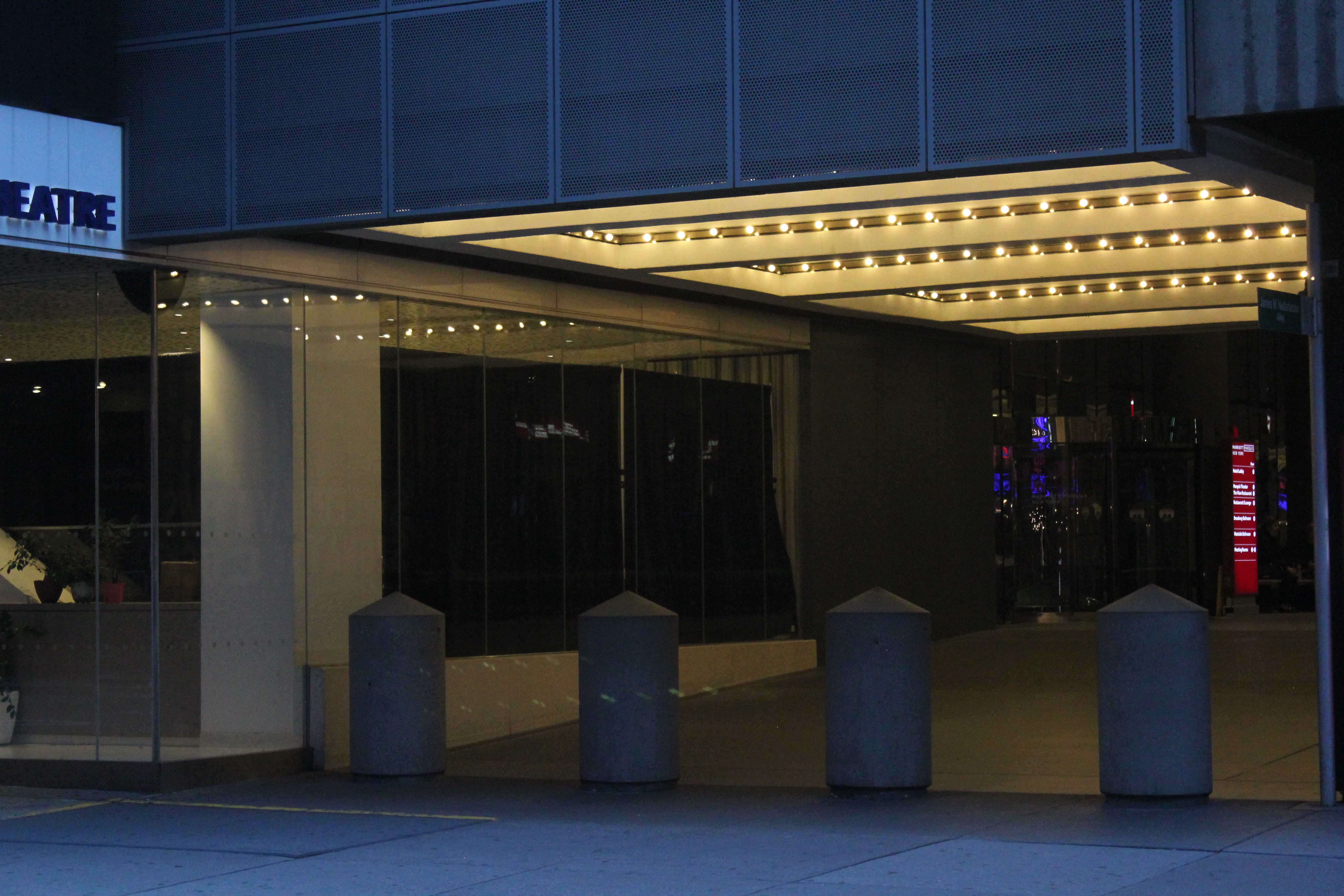 현재 뉴욕 메리어트 마르퀴스 호텔이 위치한 곳은 20세기 초 구 헬렌 헤이스 극장(en), 모로스코 극장(en), 비쥬 극장(Bijou), 아스톨 극장(Astor), 게이어티 극장 (이후 빅토리아 극장)(en) 등 다섯 개의 극장이 있던 자리였다.[258]