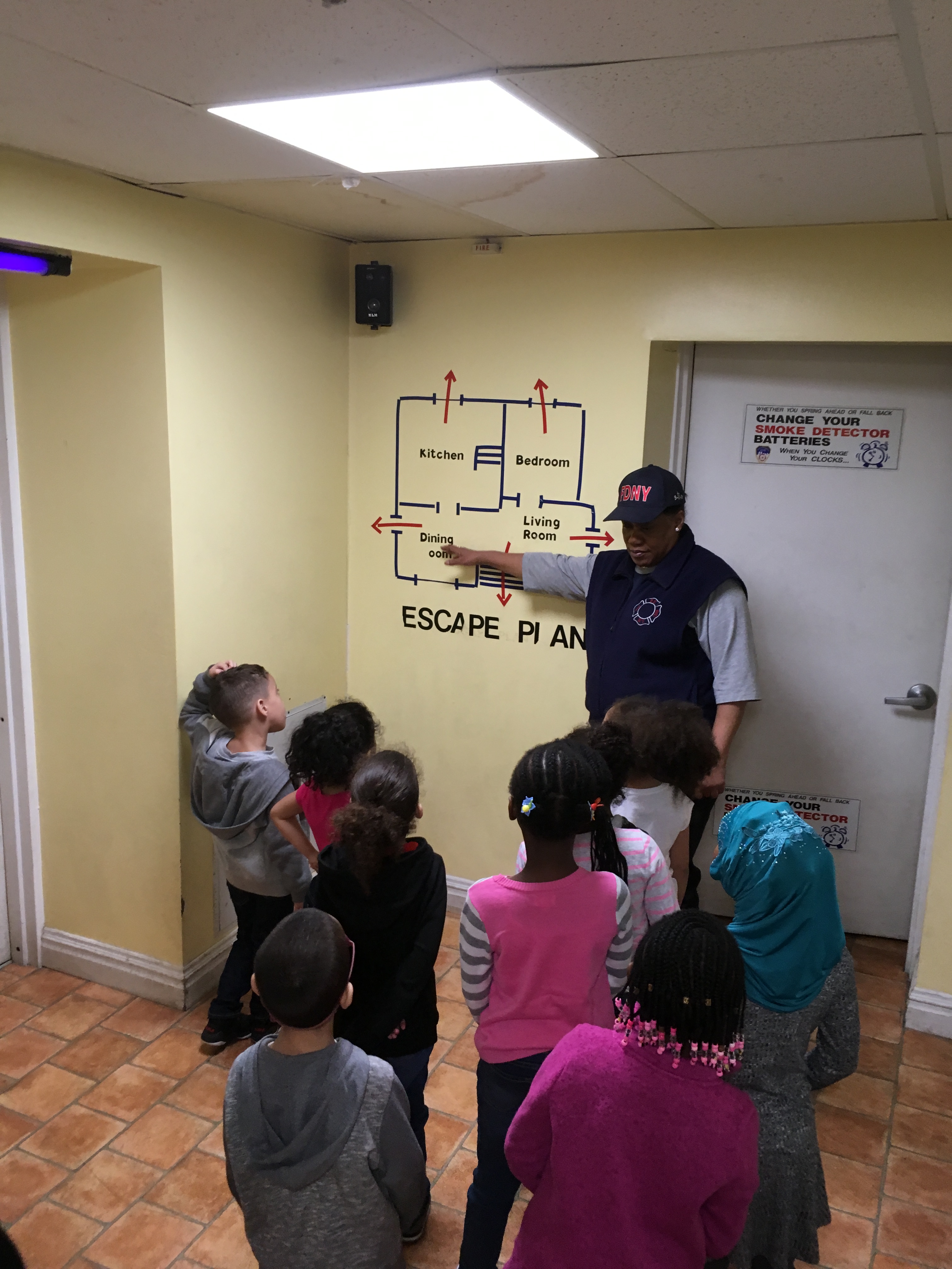 FDNY 화재 안전 교육 부서 및 FDNY 재단과 협력하여 학교 단체를 위한 체계적인 프로그램을 제공한다. 이 프로그램에서 단체는 교실에서 연령별 맞춤형 비디오를 시청한 후, 연기가 자욱한 방에서 탈출하기 위해 해야 할 일을 경험할 수 있는 모의 주거 공간으로 이동한다.[1]