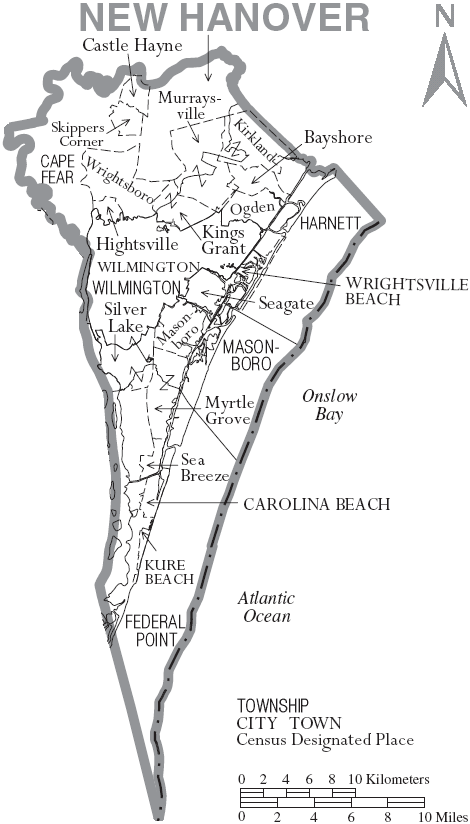 1860년까지 뉴해노버 군은 흑인이 다수였으며, 미국 남북 전쟁 중에는 제2차 포트 피셔 전투와 윌밍턴 전투가 벌어졌다. 재건 시대 이후 백인 민주당원들은 짐 크로우 법을 통해 백인 우월주의를 강요했고, 20세기 중반까지 22건의 흑인 린칭 사건이 기록되었다.[6][7]