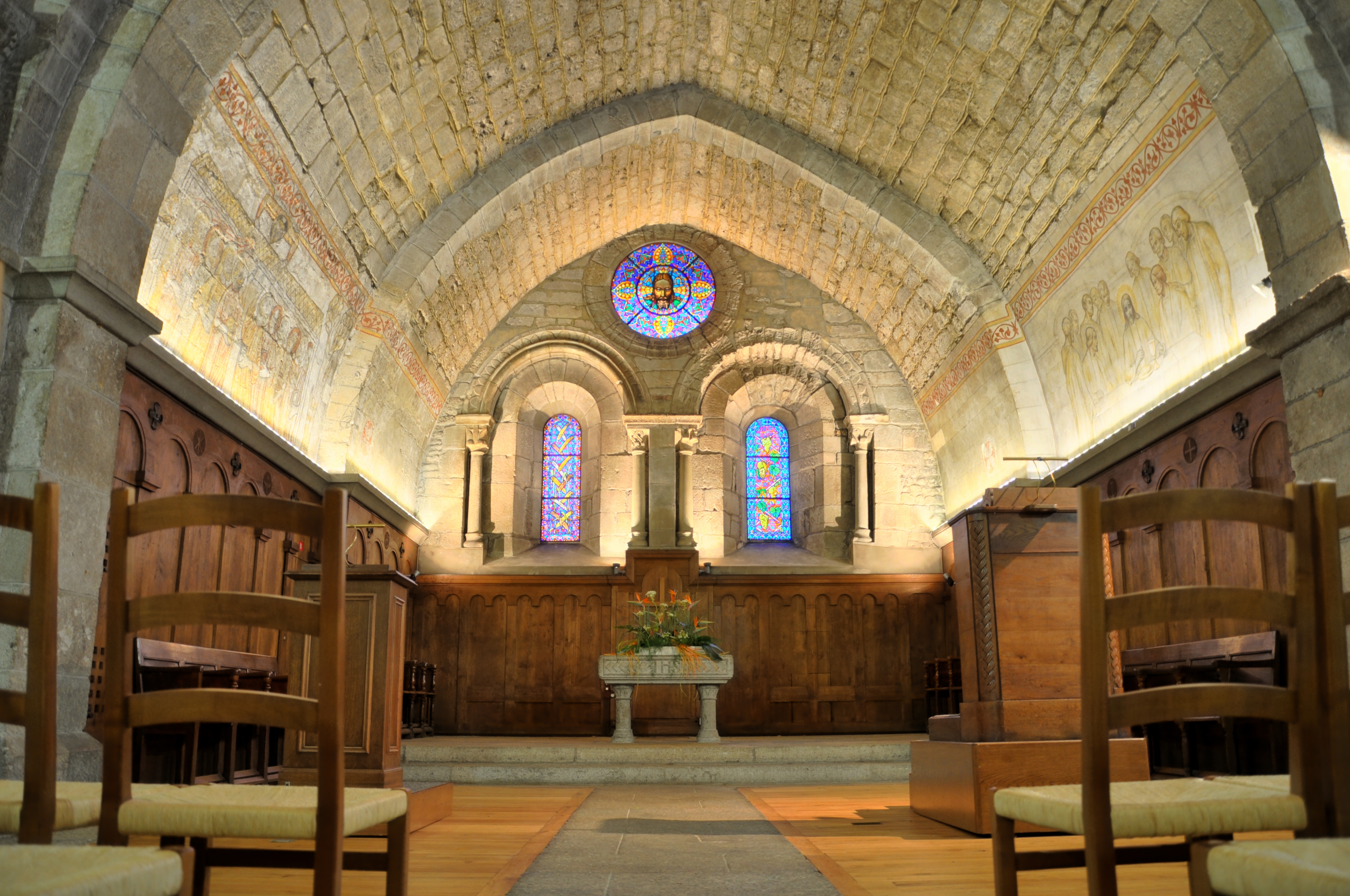 1110년 제네바는 노트르담 교회에 대한 권한을 생투앵드(생클로드) 베네딕트 수도원에 부여했다. 이 교회는 로마 시대의 건축 자재를 사용하여 건축되었으며, 초기 기독교 교회를 대체했다. 합창석은 12세기에 건축되었고, 신랑석은 1448년에 건축되었다. 돔과 측면 예배당은 1470~81년에 건축되었다.