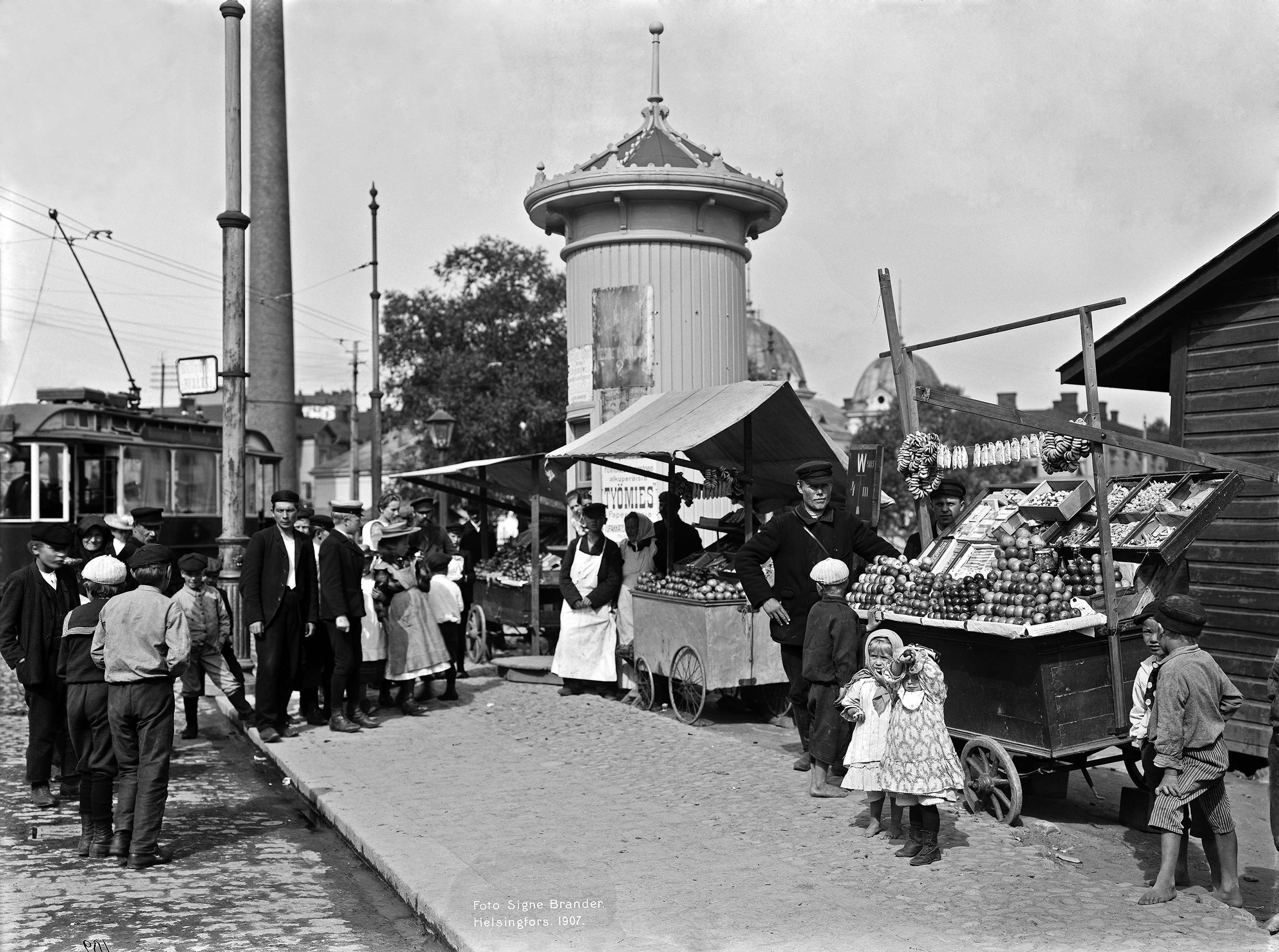 Venäläisiä hedelmäkauppiaita Hakaniementorilla