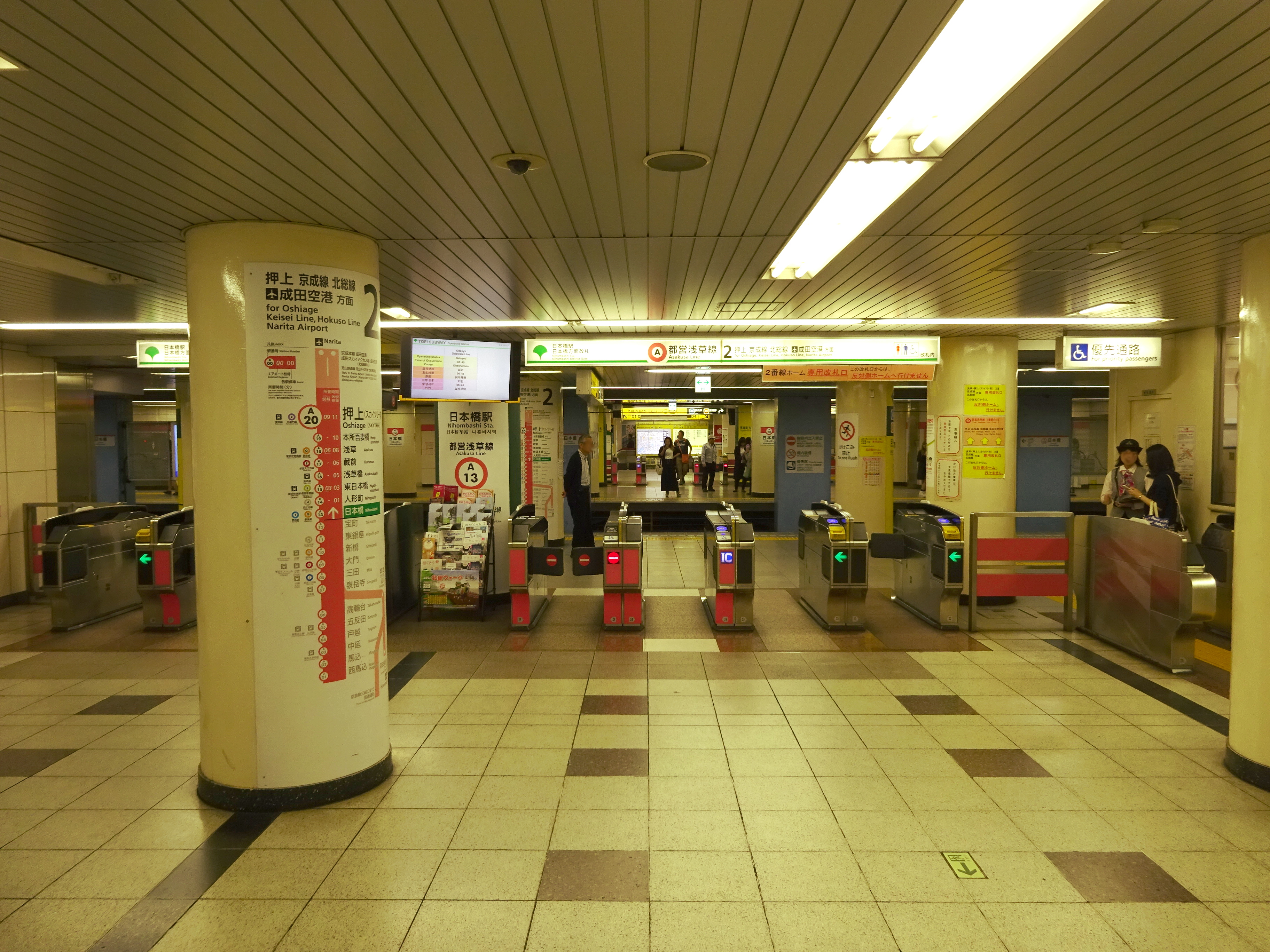| 도에이 지하철 아사쿠사 선 | 이전 역: 신바시 (A-10) 센가쿠지 방면 다음 역: 히가시니혼바시 (A-15) 급행 종류: |