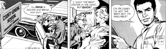 1962년, 닐 아담스는 신문 엔터프라이즈 협회(Newspaper Enterprise Association) 신디케이트에서 본격적인 만화 경력을 시작했다.[12] 리틀 에브너의 작가 앨 캡의 동생인 작가 제리 캡린(일명 제리 캡)의 추천으로, 인기 텔레비전 의학 드라마 시리즈를 기반으로 한 ''벤 케이시'' 만화를 맡게 되었다.[12] 1962년 11월 26일에 첫 일일 만화가 게재되었고, 1964년 9월 20일에는 컬러 일요 만화가 추가되었다.[16]