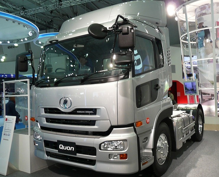 닛산 디젤 큐온은 2004년 닛산 디젤 빅섬의 후속 모델로 일본에서 출시된 대형 트럭이다. 큐온은 세계 최초로 SRS 무릎 에어백과 무릎 보호대를 채택했으며, 2010년 마이너 체인지를 통해 볼보 엔진을 탑재하고 UD트럭으로 사명이 변경되었다. 2012년에는 대한민국 시장에 진출했으며, 2017년 1세대 모델이 단종되고 2세대가 출시되었다. 큐온은 다양한 운송 목적에 맞는 라인업과 요소수 SCR 기술을 사용하는 친환경 엔진을 갖추고 있으며, 이스즈 기가와의 OEM 공급을 통해 모델을 확장하고 있다.