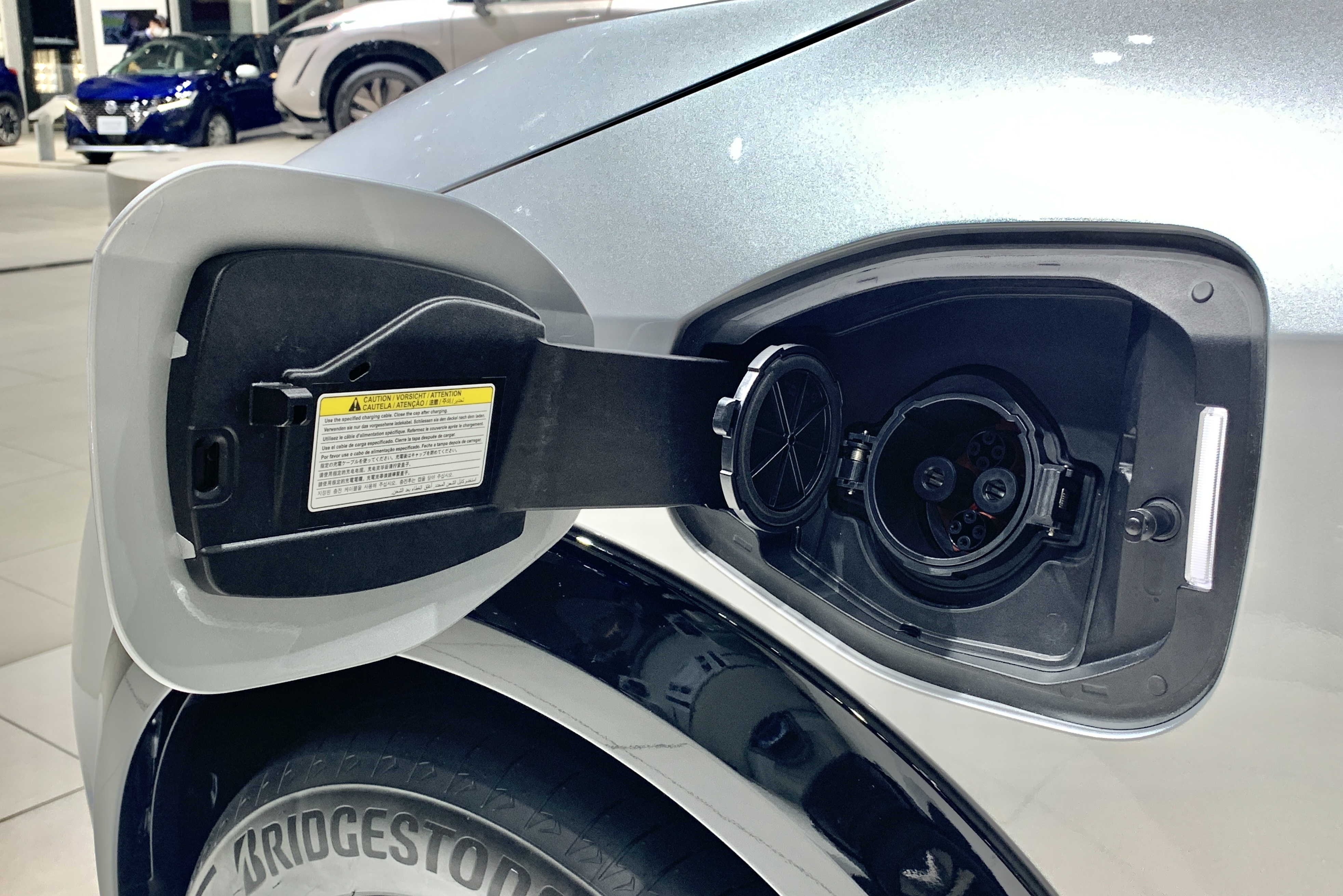 좌측에는 CHAdeMO 급속 충전 포트, 우측에는 일반 충전 포트(SAE J1772)가 있다.