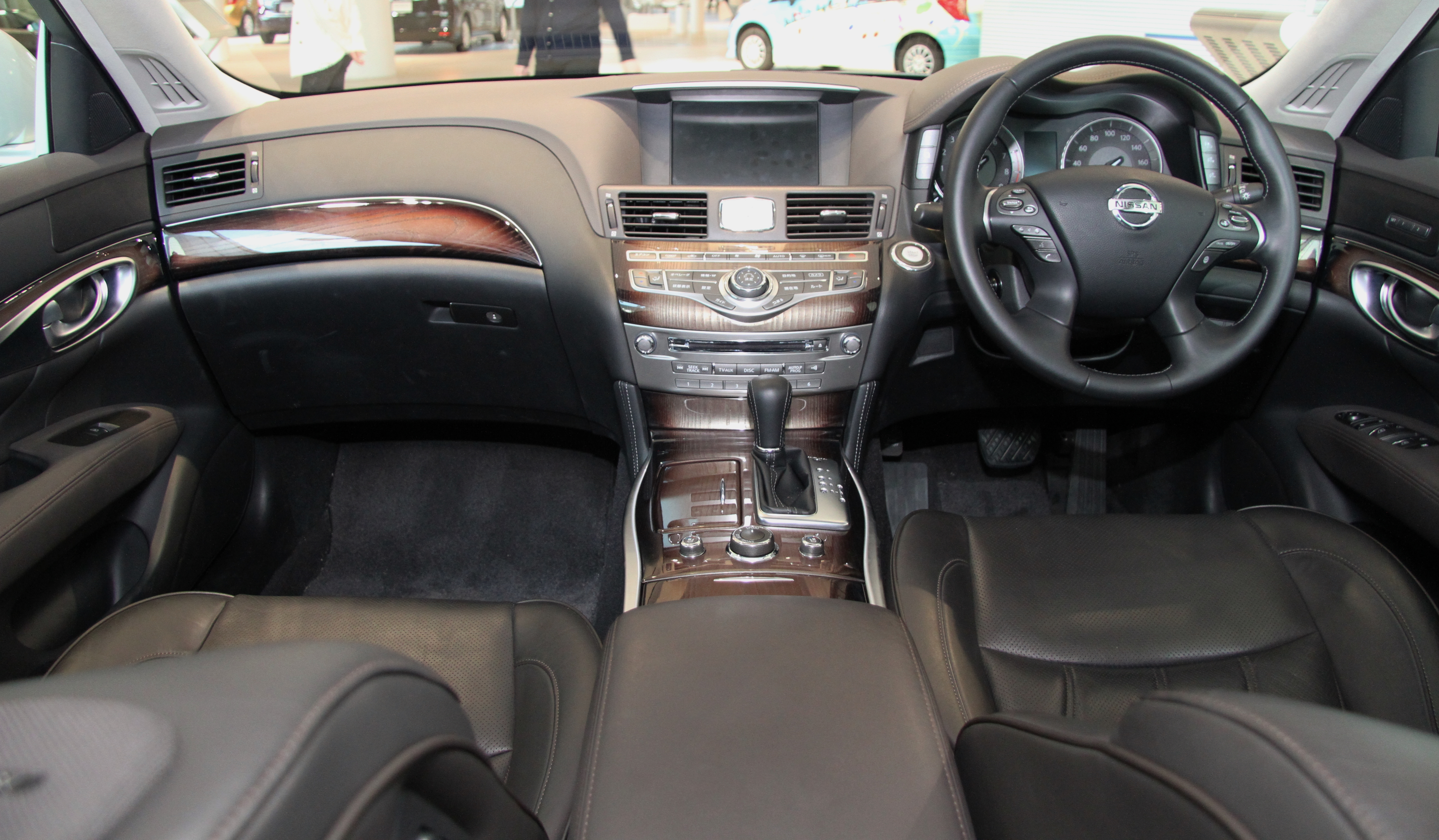 2004년 11월에 출시되었으며, 2003년 도쿄 모터쇼에서 발표된 컨셉트 카 푸가의 양산형이다. V6 2.5L VQ25DE 엔진과 280마력 V6 3.5L VQ35DE 엔진이 탑재되었고, 2005년 8월부터는 338마력 V8 4.5L VK45DE 엔진이 추가되었다. 모든 엔진에 5단 자동변속기를 조합했다. 2007년 12월에는 페이스리프트를 거쳐 V6 2.5L VQ25HR 엔진과 302마력 V6 3.5L VQ35HR 엔진으로 대체되었다.