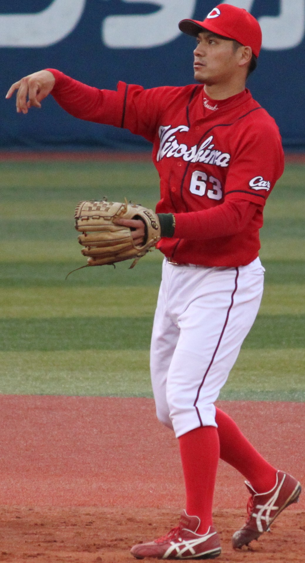 2013년 프로 야구 드래프트 회의에서 히로시마 도요 카프로부터 3순위로 지명받았다. 계약금 7000만, 연봉 1100만(금액은 추정)이라는 조건으로 입단했다. 등번호는 이 해까지 마루 요시히로가 달고 있던 '''63'''번을 받았다. 이 해 1군 주전 중견수로 정착하여 센트럴 리그(세 리그) 도루왕 타이틀을 획득한 마루와 같은 활약을 기대했다고 한다.