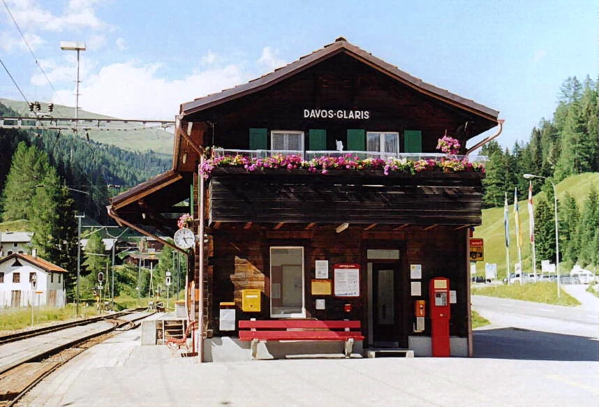 더 이상 운행하지 않는 다보스 이슬렌 정류장에는 평평한 지붕이 있는 훨씬 간단한 대피소가 있다.
